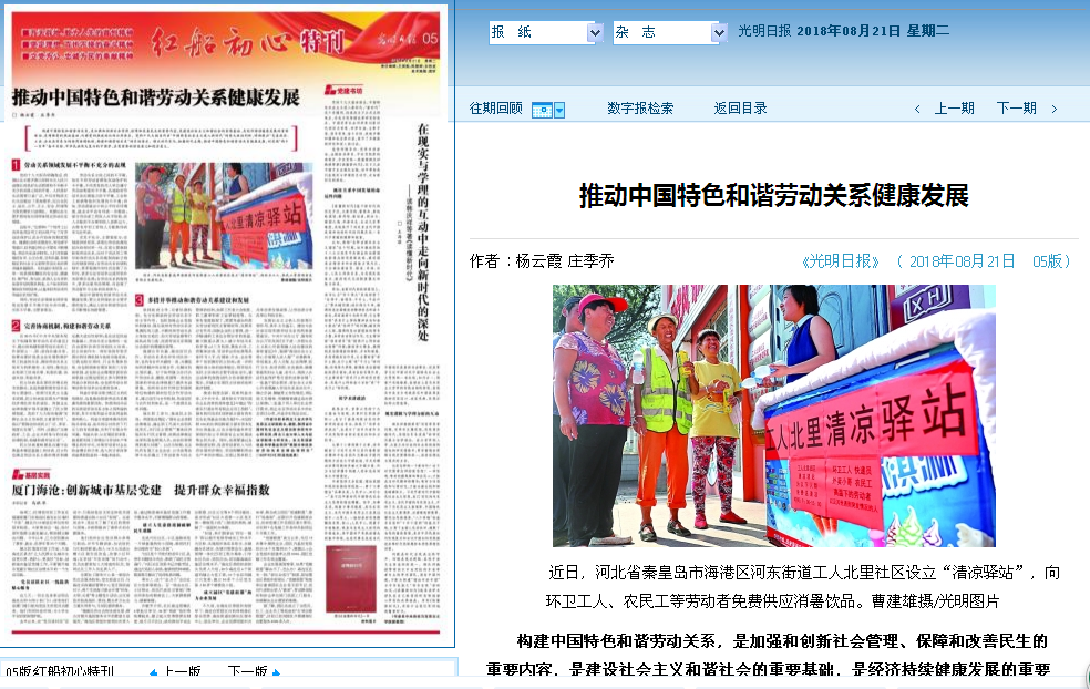 在8月21日出版的《光明日报》第5版“红船初心特刊”上,刊发必赢bwin官方网站教授杨云霞和人文与经法学院博士研究生庄季乔联合署名的理论文章《推动中国特色和谐劳动关系健康发展》。