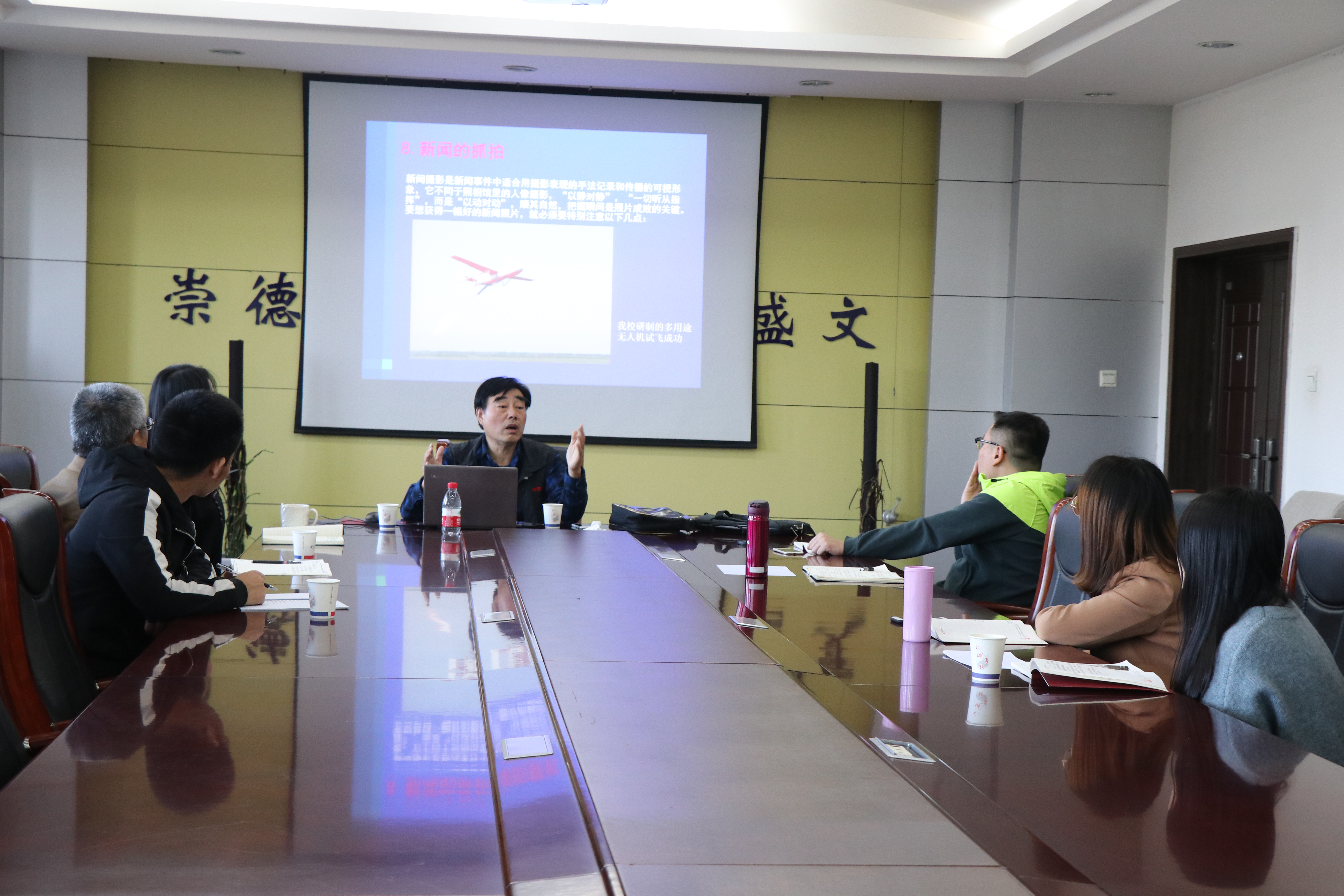 首先,郭老师结合自己在西工大四十多年摄影经验,从五个方面总结了新闻摄影的理论要点。他强调,拍摄一幅好新闻摄影作品要把学到的新闻摄影理论和技巧相结合,善于观察,培养新闻敏感性,抓住场景能传达信息的细节和要点,再结合一定文字说明,才能做到“一图胜千言”。各位党员同志表示非常受用。