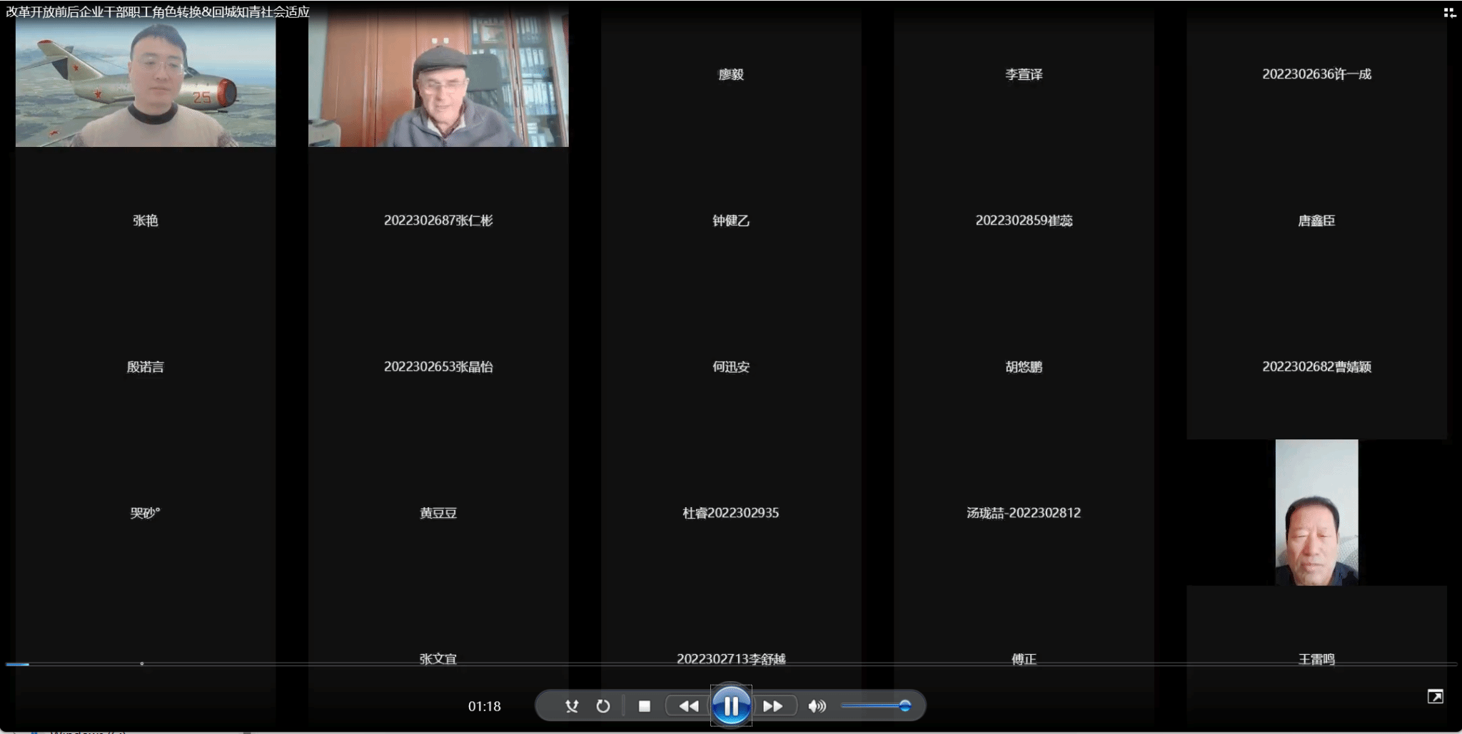 访谈过后,同学们进行了线上线下相结合的资料转写、整理和讨论,在大约10小时的访谈音频、视频,以及大约12万字的访谈原始记录稿基础上,完成了相关主题的30余篇“改革开放口述史”报告。