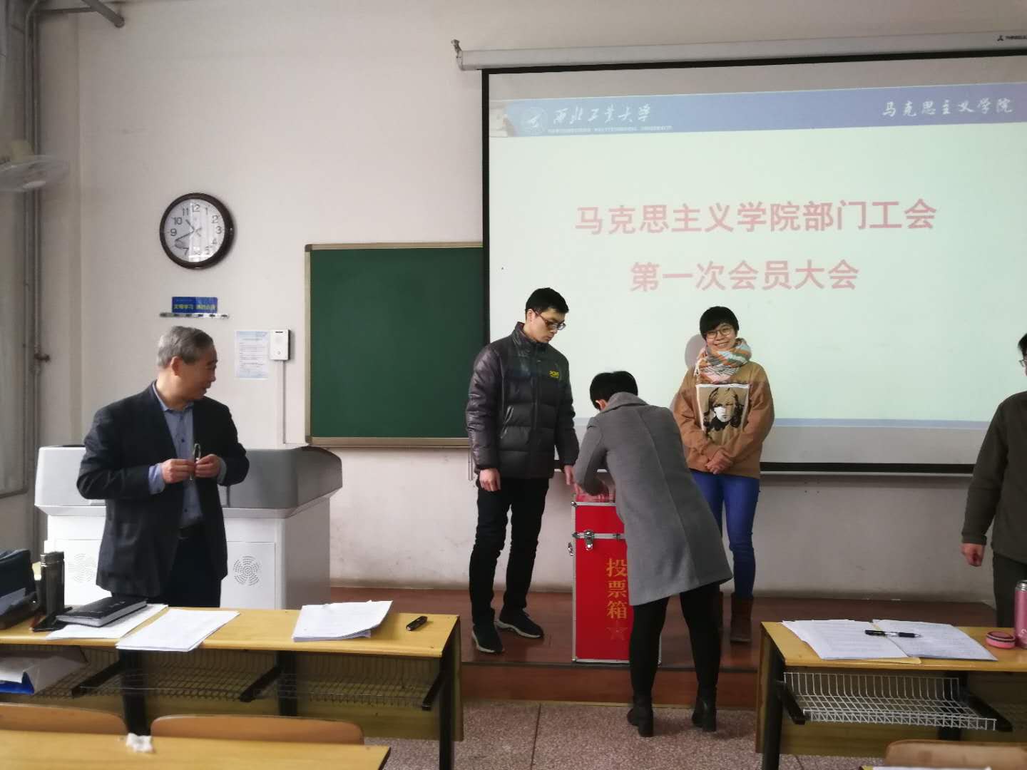 鲁卫平主持了学院部门工会会员大会,刘敏宣读了《必赢bwin官方网站部门工会选举办法》,与会工会会员通过差额选举产生了第一届工会委员会委员,王斌代表新当选的工会委员发言。