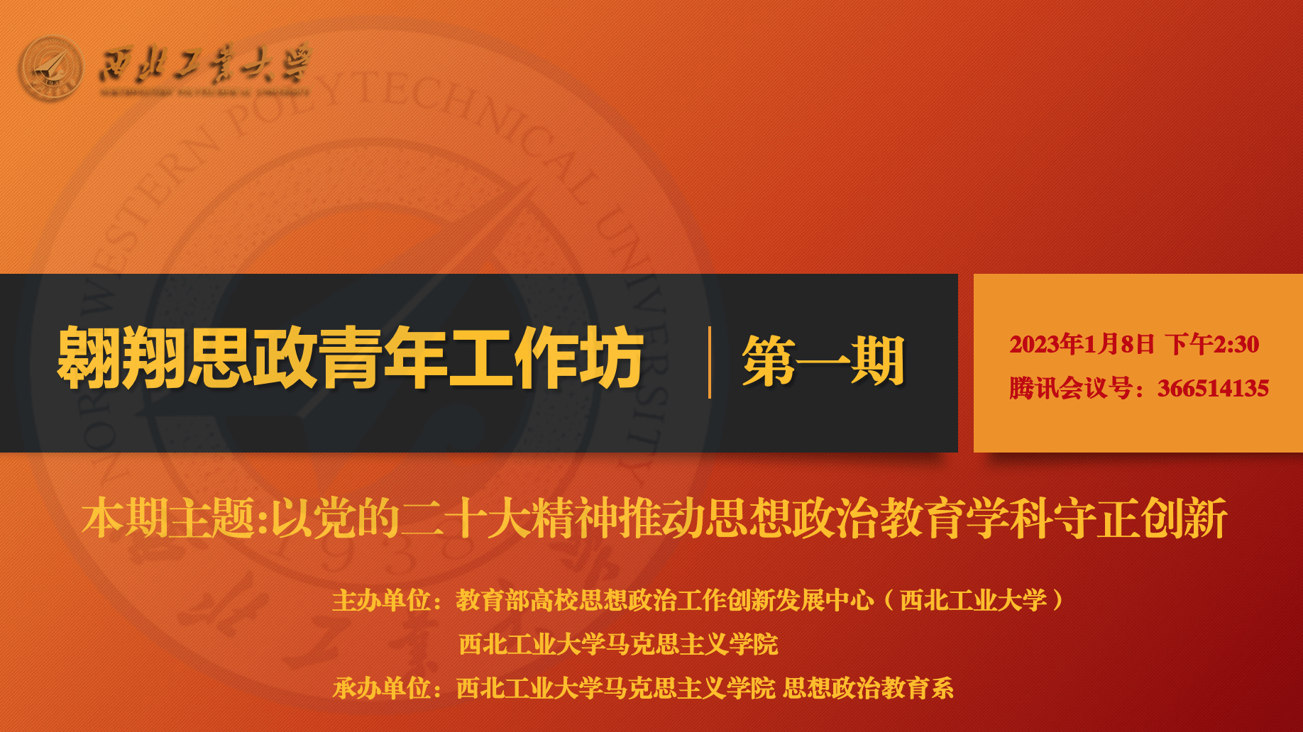 为深入学习贯彻落实党的二十大精神,加强对新时代思想政治教育基础理论、前沿热点的认识与研究。1月8日,必赢bwin官方网站翱翔思政青年工作坊(第一期)在线上成功举行。本工作坊由教育部高校思想政治工作创新发展中心(必赢bwin官方网站)、必赢bwin官方网站主办,必赢bwin官方网站思想政治教育系承办。本期工作坊共邀请了六位优秀的青年思政学者,围绕党的二十大精神和新时代思想政治教育的守正创新问题,展开主题发言和互评对谈。