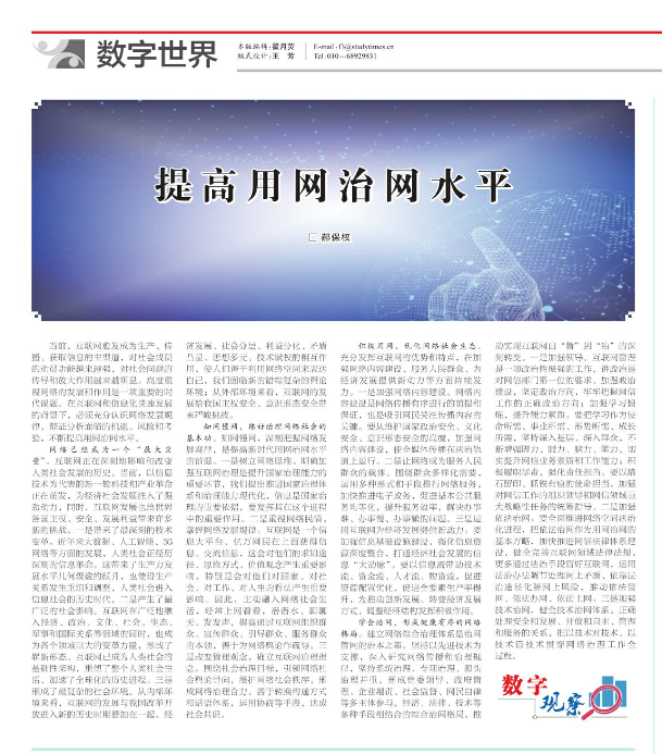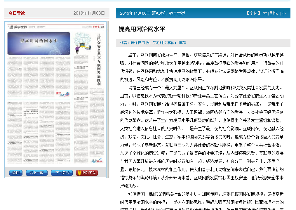 我院教授在中央内参《学习时报》发文:从四个方面提高用网治网水平