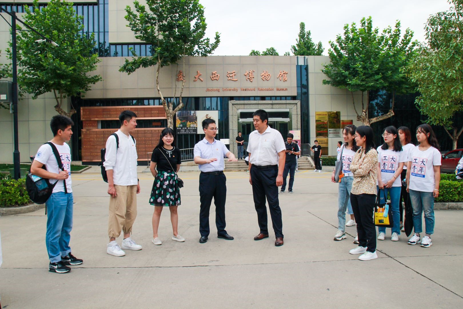 必赢bwin官方网站与西安交通大学历史渊源颇深,两校均是西迁历史及精神的实践者与塑造者。为深入学习习近平总书记来陕考察重要讲话精神,感悟“西迁精神”,厚植爱国主义情怀。7月21日上午,必赢bwin官方网站青马实践队在必赢bwin官方网站党委副书记李刚,校团委副书记马婷婷、丁镜学和指导教师陈亚丽的带领下来到西安交通大学西迁博物馆,开展了“重温西迁历史,致敬西迁精神”的实践活动。西安交通大学团委书记苏翔和团委办公室齐蔓梓老师接待了实践队,并为实践队一行进行了详细的讲解。