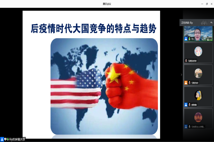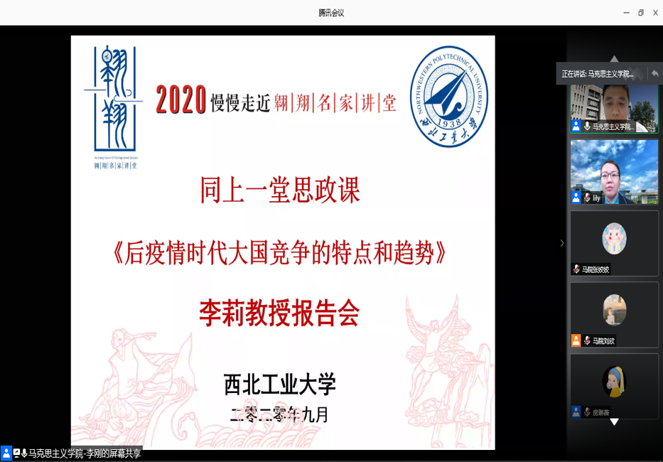 2020年9月11日下午15:00,中央人民广播电台特约军事评论员,必赢bwin官方网站李莉教授应邀作客必赢官网翱翔名家讲堂,在腾讯会议网络平台为必赢官网广大师生带来一场主题为《后疫情时代大国竞争的特点和趋势》的精彩报告会。来自航空学院、航天学院、教育实验学院、微电子学院等近300名师生聆听了此次报告。本次翱翔名家讲堂由必赢bwin官方网站党委学生工作部主办,必赢bwin官方网站承办,必赢bwin官方网站党委副书记李刚主持。