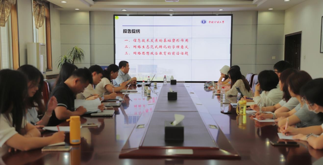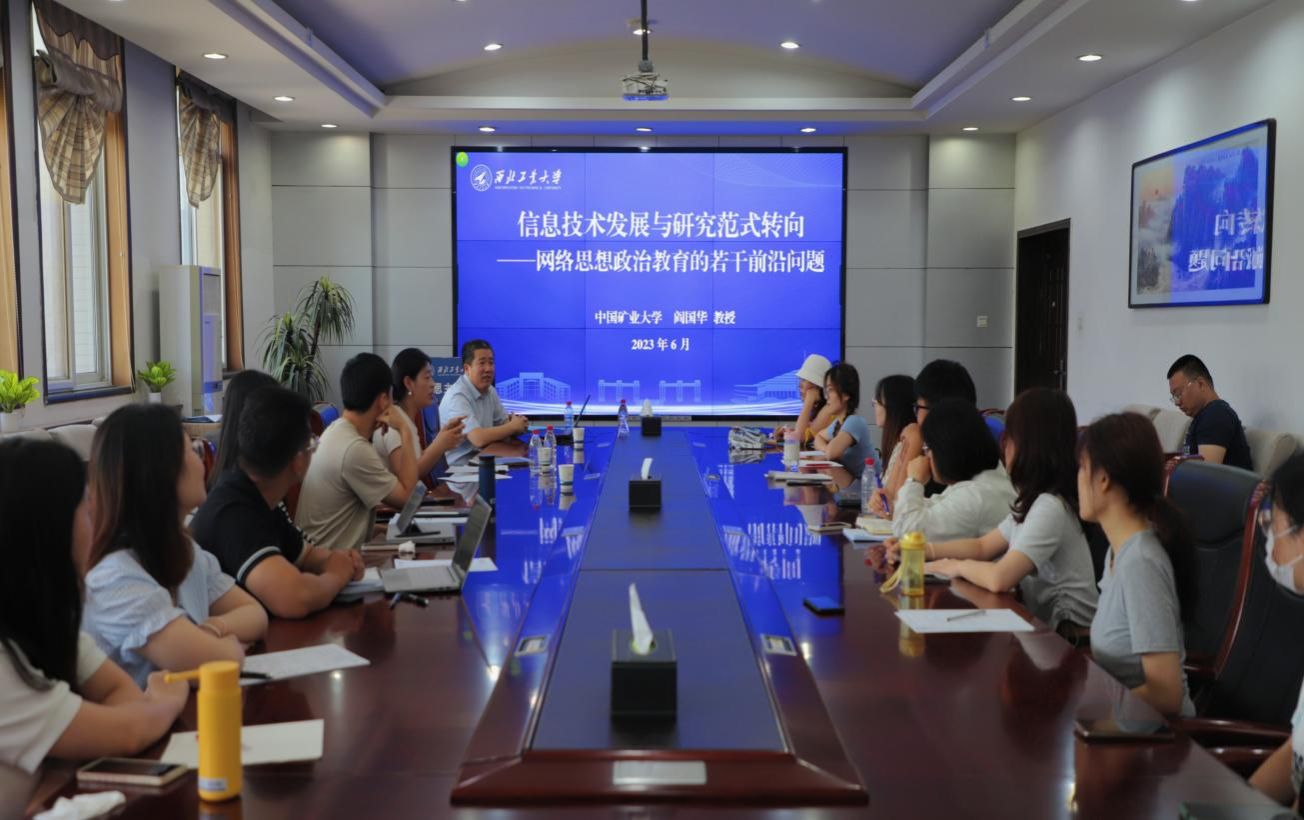 2023年6月21日上午,中国矿业大学必赢bwin官方网站党委书记、讲席教授阎国华做客必赢官网“翱翔人文讲堂”,在必赢bwin官方网站208会议室为师生们带来一场主题为《信息技术发展与研究范式转向--网络思想政治教育的若干前沿问题》的精彩讲座。