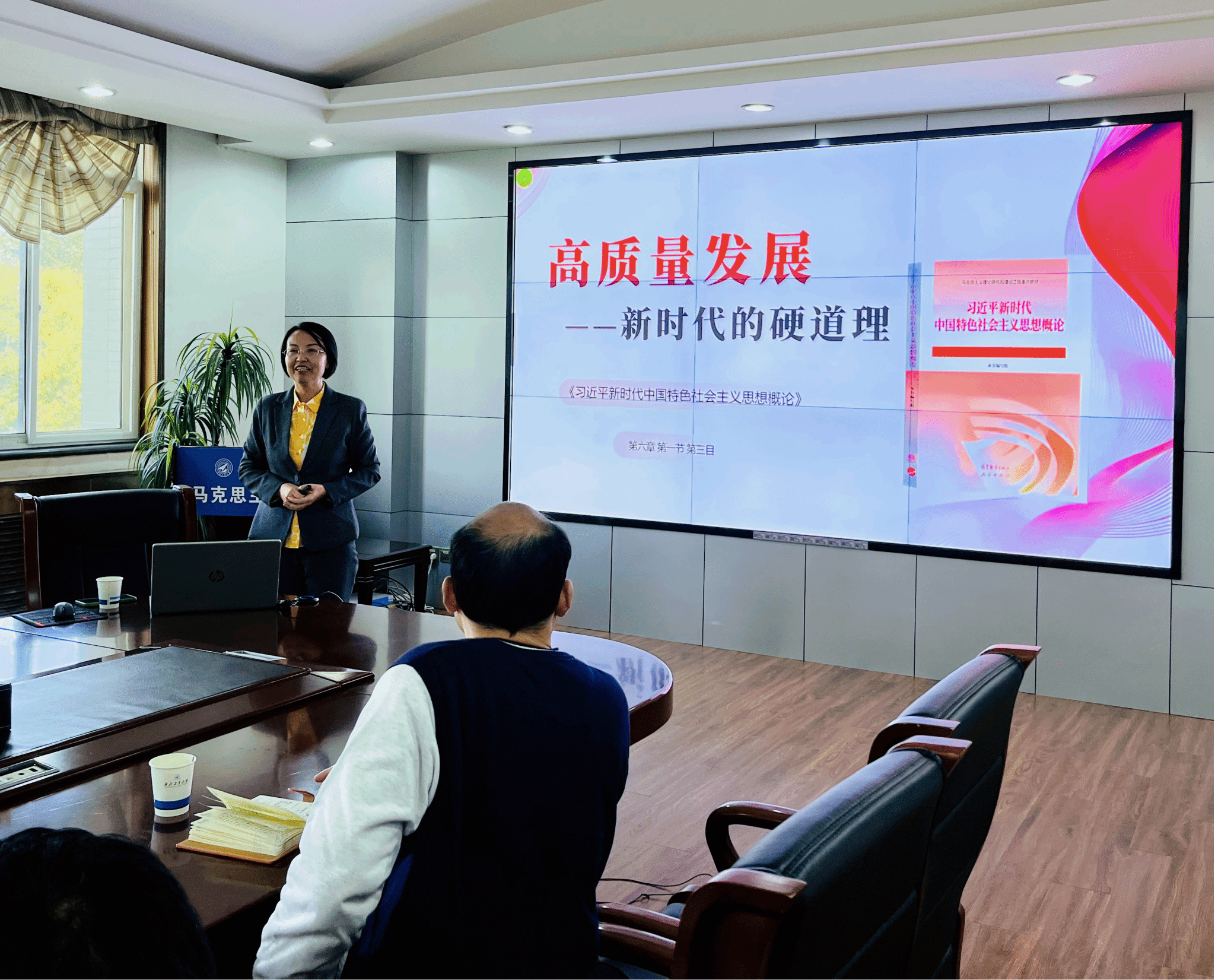 接着,由陕西省“思政课大练兵”教学标兵宁殿霞老师进行观摩展示。宁殿霞老师以“高质量发展——新时代的硬道理”为题进行教学展示,以其PPT呈现的质量之高和宁殿霞老师切合主题的案例分析获得了在座思政课教师的认可。