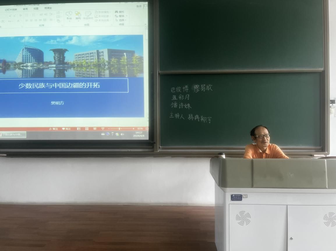 樊明方教授分别从统一边疆定版图,保卫边疆御外侮和开发边疆建家园三个方面阐述了少数民族对中华民族发展以及中国版图的历史贡献。最后,樊明方教授又列举各少数民族在物质生产和精神生产方面的成就,如新疆的坎儿井、藏族的牦牛和青稞、广西壮族地区的壮锦以及蒙古族的马头琴和哈萨克族的冬不拉等,这些无不彰显了中华民族的勤劳和智慧。在漫长的历史发展过程中,各民族为中华文化的繁荣与发展均作出了重要的贡献 。