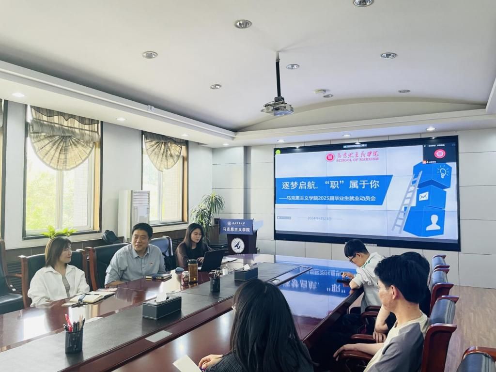 会议伊始,兼职辅导员单璐玉分析了马克思主义理论专业的就业形势,介绍了往届毕业生的去向,让大家对就业趋势有了初步认知。单璐玉依据2025届同学们填写的调查问卷,就求职的准备工作、职业发展规划、招聘信息的获取等方面进行了分析。除此以外,还讲解了毕业生签约流程、数字化签约平台的使用等相关事宜,并对毕业生推荐表、签订三方协议、毕业生改派等情况进行了说明。