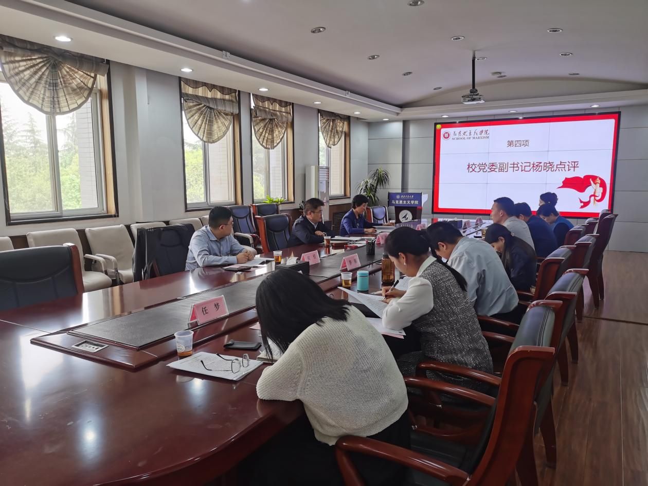 学校党委副书记杨晓在点评讲话中指出,一是希望学院党委高度重视巡视整改工作,系统推进巡视整改工作高质量完成。对标《关于巡视必赢bwin官方网站党委的反馈意见》提出的整改问题,切实加强学院马克思主义理论学科建设、思政课建设,加大研究生培养和人才引进力度;二是工作中要讲究方式方法,系统推进,重点突破,完善内部治理体系,确保工作出实效;三是推动全面从严治党向纵深发展,学院领导要结合分管领域的工作认真查找管理上的漏洞,结合学校目标责任制,锚定学校“127”发展目标,对标一流,为实现学院高质量发展凝心聚力,砥砺前行。