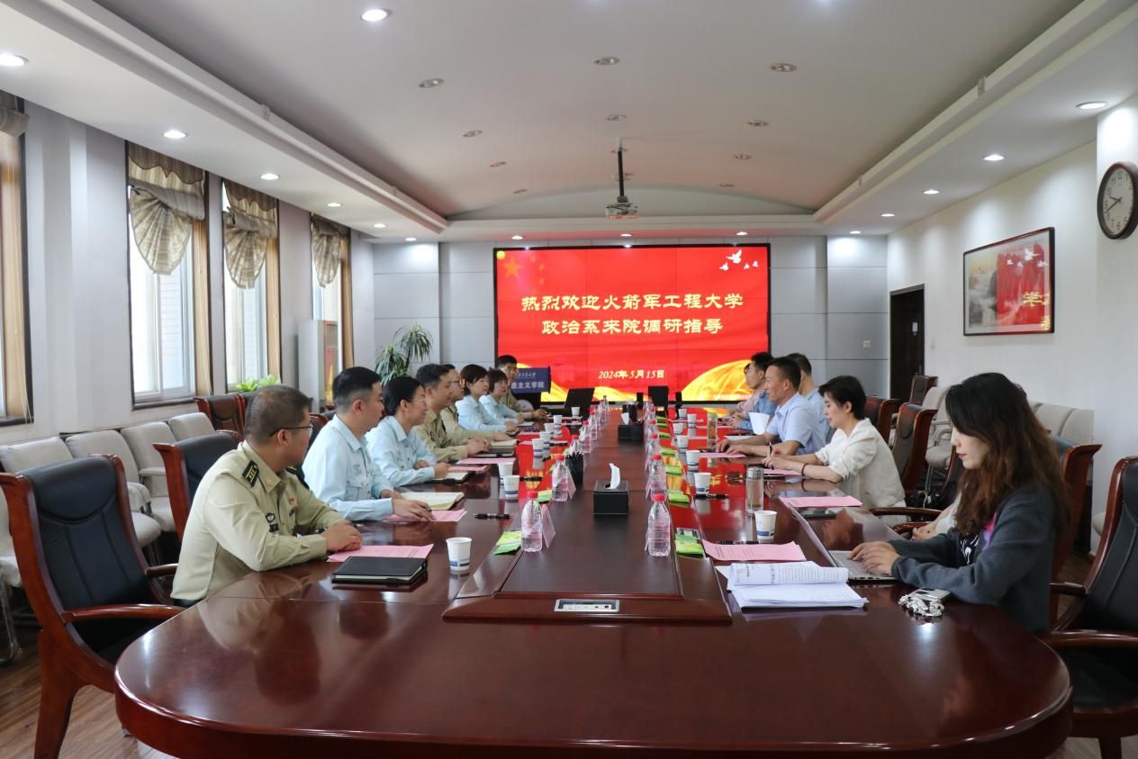 2024年5月15日上午,中国人民解放军火箭军工程大学政治系系主任高攀一行8人来必赢官网必赢bwin官方网站调研交流。必赢官网必赢bwin官方网站党委书记蒲传新等参加了调研交流会并主持会议。