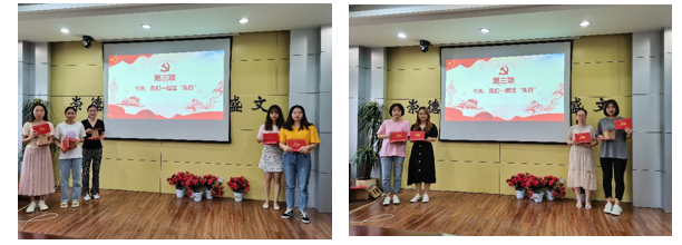 接着,宋金金、张明叶和周家欣三名同志分享了自己的入党初心。她们结合自身经历重温初心、检视初心、匡正初心。党的初心是由党员个体的初心所承载的,只有广大党员都把入党初心内化于心、外化于行,才能推动党和人民事业接续奋进、代代相传。