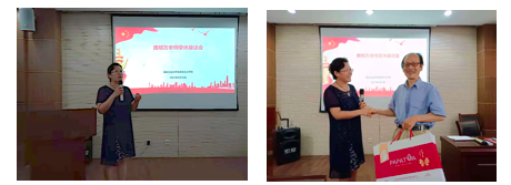 荣休会一开始,高旭红主席代表学院工会为仪式致辞,表达了对樊老师的敬意与不舍,并赠送纪念礼品。高旭红老师表示,樊老师在我院勤恳教学,潜心学术,孜孜求真,为学院人才培养、教学科研、国际交流等方面建设做出了突出贡献。