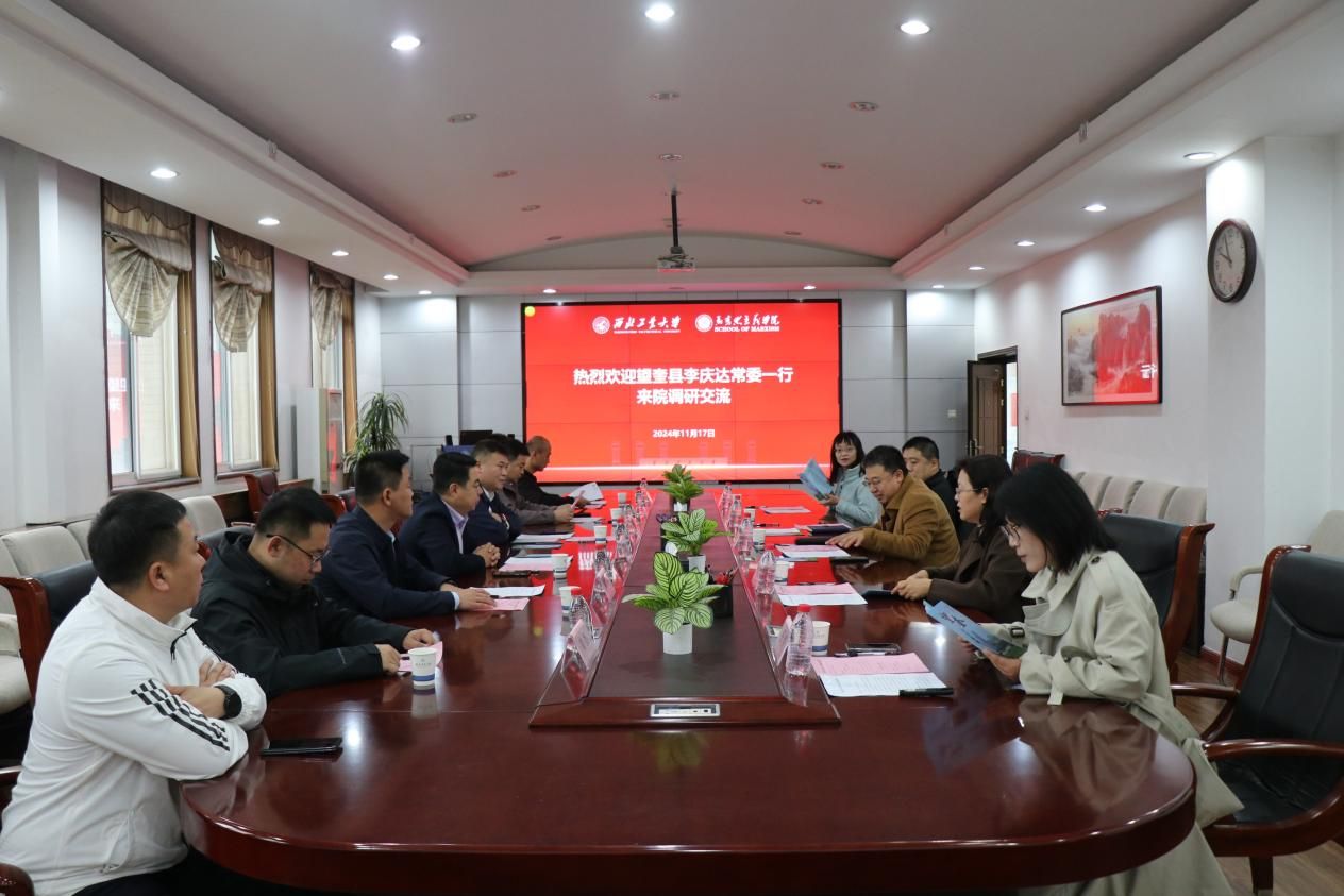 11月17日,望奎县李庆达常委一行来到必赢bwin官方网站调研交流。调研交流会在学院208会议室举行,必赢bwin官方网站党委书记王彦革等人参加了本次会议。会议由王彦革主持。