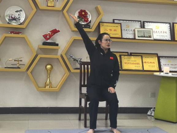 本周四中午,利用中午休息时间,体育部的彭琼老师为必赢bwin官方网站的女工带来了一场健康讲座。彭老师系统为大家讲解和示范了久坐久站缓解疲劳的训练方法,因地制宜利用办公室椅子进行肩背放松修复等训练。
