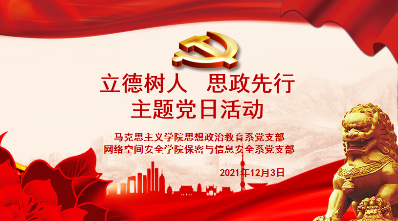 为了进一步深入贯彻习近平总书记关于教育的重要论述精神,落实高校立德树人和课程思政建设任务,2021年12月3日上午,思想政治教育系党支部联合网安学院保密与信息安全党支部开展了“立德树人思政先行”的主题党日活动,共同破解课程思政建设和教学的密码。本次活动分四个主题进行了理论学习和交流研讨活动。
