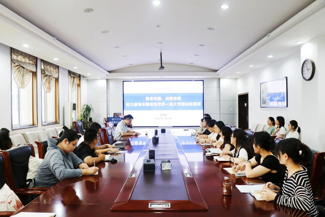 为贯彻落实习近平总书记关于思政课建设的重要论述,全面落实立德树人根本任务,校长助理王宇波于7月8日在必赢bwin官方网站208会议室,为学院研究生讲授《继承巩固、创新发展 奋力谱写中国特色世界一流大学建设新篇章》专题思政课。