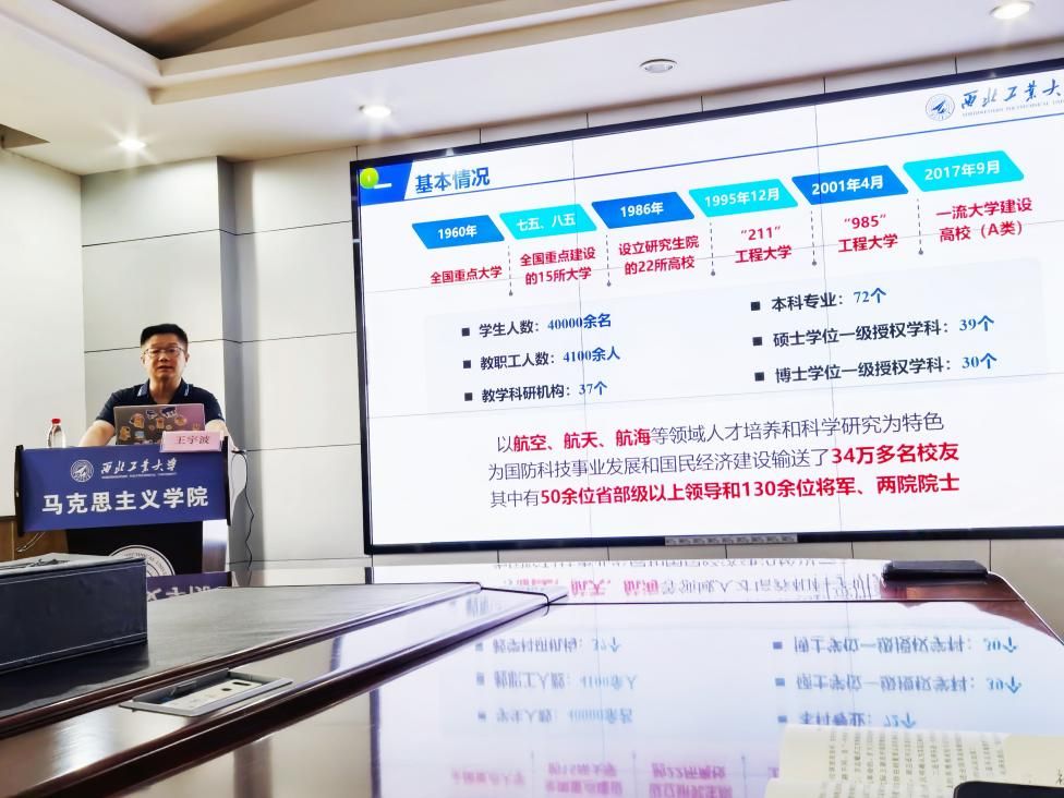 课堂中,王宇波基于学校第十四次党代会精神要求,从学校发展理念、“十四五”期间学校取得的突出成绩以及学校未来发展目标等维度进行讲述,重点结合学校人才培养、师资队伍建设、科技自立自强、学科专业布局、对外开放合作、社会服务等方面详细介绍学校在服务国家重大战略需求过程中,凝心聚力、迎难而上,实现一个又一个跨越式发展,通过摆事实、举例子,拉近了学校发展与师生日常之间的距离,强化了同学们“为党育英才、为国铸重剑”的使命担当。他强调,西工大人的奋斗历程与党和国家的期待同频共振,多年来形成的“西工大现象”以及其背后蕴含的“总师育人文化”是西工大人才培养的特有底色。他要求同学们要坚持从“两个结合”重大命题的角度,深刻理解学校发展过程中西工大人“三实一新”“公诚勇毅”校风校训等精神内涵,切实将中国人百折不挠、激流勇进的进取精神与我们应对两个百年变局的时代事业相结合,希望必赢bwin官方网站学子能够发挥学科优势,突出价值引领,在理论阐释方面为学校学科建设和校园理论宣讲等方面做出突出贡献。