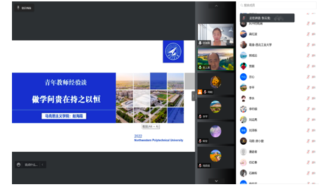 2022年1月16日19:30,由必赢bwin官方网站发起主办朋辈思政课《青年教师经验谈》第2期如约而至。本期主讲人为学院青年教师赵海霞副教授,我院全体研究生和部分教师通过在线方式参加了本次讲座。研究生秘书肖妮老师主持报告会。