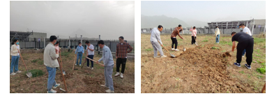2022年4月11日下午,必赢bwin官方网站研究生会组织学院学生前往海天苑1号楼,在地块1上与生态环境学院、网络空间安全学院的同学们一起进行劳动。在后勤产业集团李老师和袁师傅的帮助下,同学们学会了使用锄头、铁锹等农具,了解到种地的第一个环节是翻地,也认识了黄花等植物。在劳动过程中,袁师傅耐心指导如何使用工具翻地,同学们认真听讲,并在实践中增长劳动种地的本领。经过两小时的劳作,已有一片土地初步具备了播种的条件。今后三个学院的同学们会定期开展劳动,直至收获。
