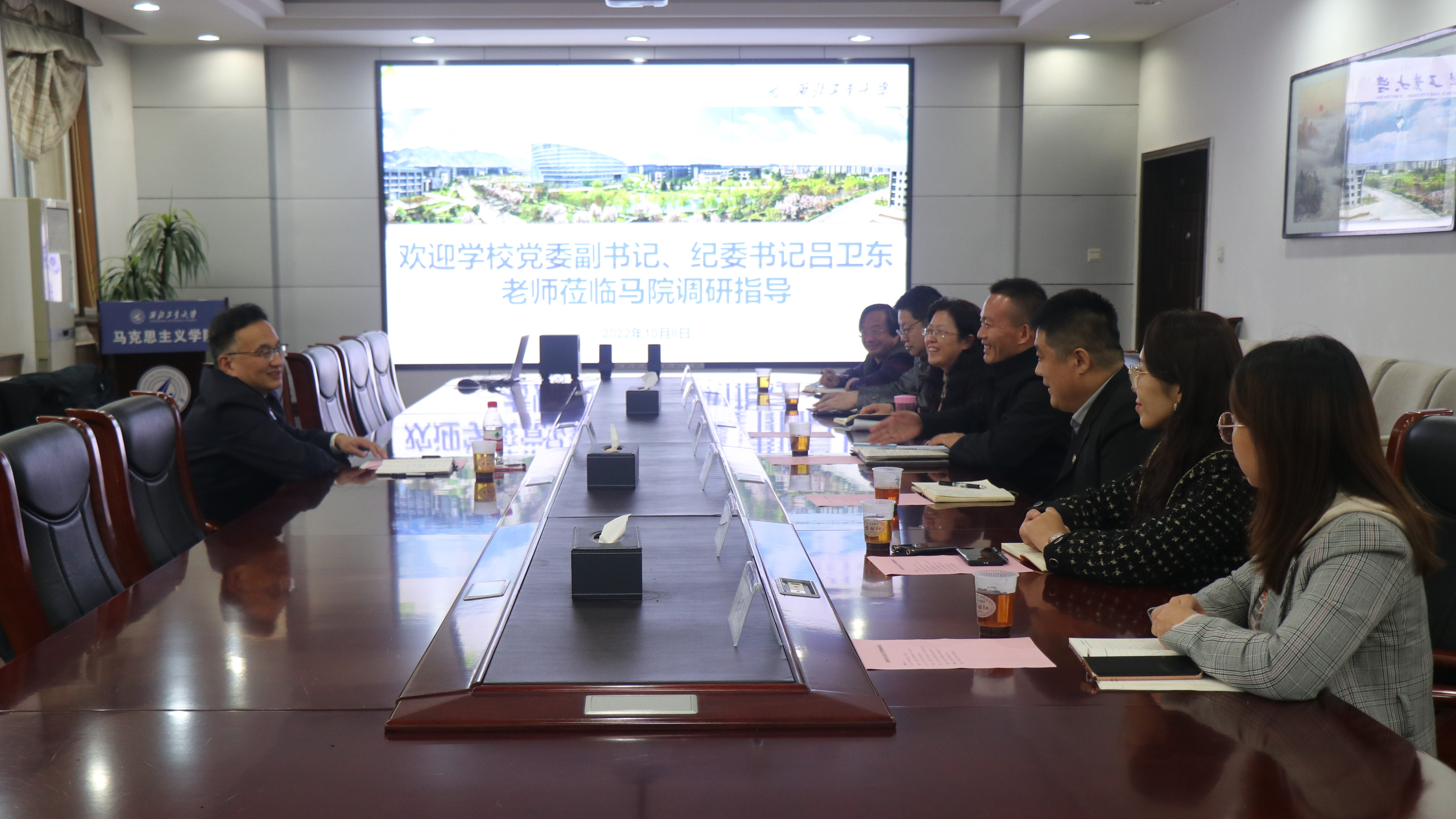 10月8日下午,校党委副书记、纪委书记吕卫东到必赢bwin官方网站调研指导工作。必赢bwin官方网站党委副书记(主持工作)蒲传新、党委副书记李刚、马克思主义中国化研究系主任高旭红、思想与政治教育系主任鲁杰、德法与形势政策系主任高宝营、院办主任郭雅楠、公共课教学秘书张笑男等参加了会议。