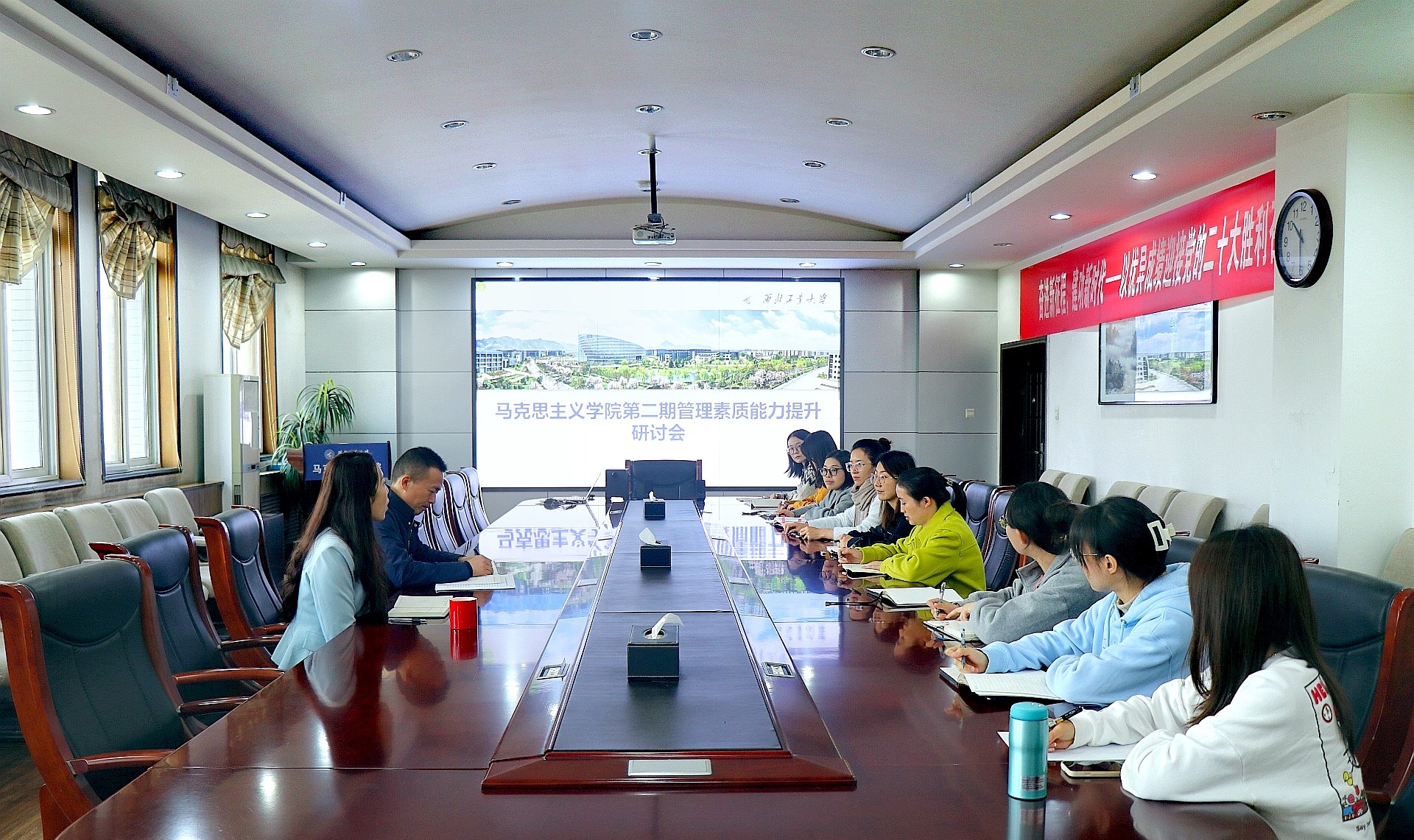 为持续提高学院管理人员职业素养和业务能力,促进团队凝聚力与配合力,10月21日上午,必赢bwin官方网站办公室在学院楼208会议室召开第二期办公室管理素质能力提升研讨会,学院党委副书记(主持工作)蒲传新、办公室主任郭雅楠、学院全体办公室秘书参加了此次研讨会。会议由郭雅楠主持。