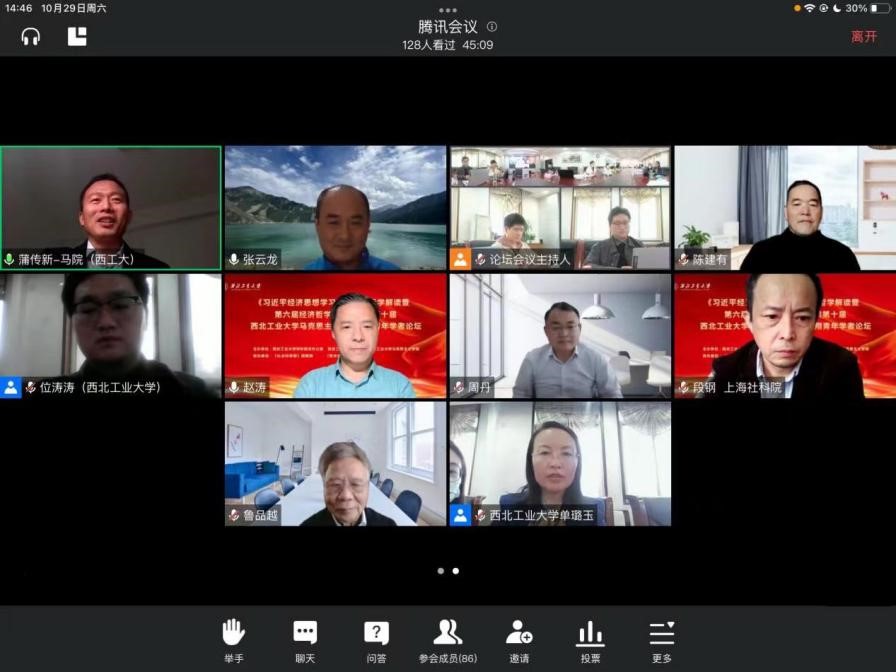 青年学者发言第三场由《郑州轻工业大学学报》特约编辑聂海杰副教授主持。广西大学必赢bwin官方网站元晋秋副教授以“资本的历史使命”与“固定资本就是人本身”出发,对《1857-1858年经济学手稿》中两个命题进行了解读。温州大学必赢bwin官方网站吴琼老师论述了平台经济的运行逻辑及其文化效应。扬州大学必赢bwin官方网站平成涛老师从数字劳动的概念、数字劳动与平台资本之间的关系等方面论述了马克思政治经济学批判视域中的数字劳动问题。必赢bwin官方网站马克思主义宁殿霞老师就习近平关于“发展数字经济”重要论述从历史进程、历史机遇、社会变革、战略选择四个方面进行了哲学解读。作为翱翔青年学者代表,西北大学经济管理学院安梦天博士作了题为“比较与超越:西方生态现代化理论与中国式人与自然和谐共生的现代化”的发言、上海财经大学人文学院李茜博士做了题为“数字拜物教的本质及其批判性超越——以习近平数字经济思想为指导”的学术交流。