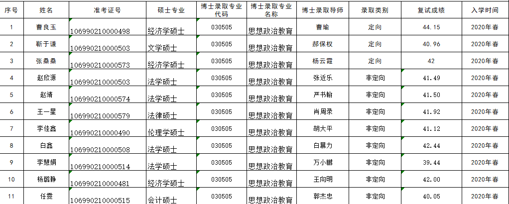 必赢bwin官方网站2020年第一次公开招考博士研究生录取名单