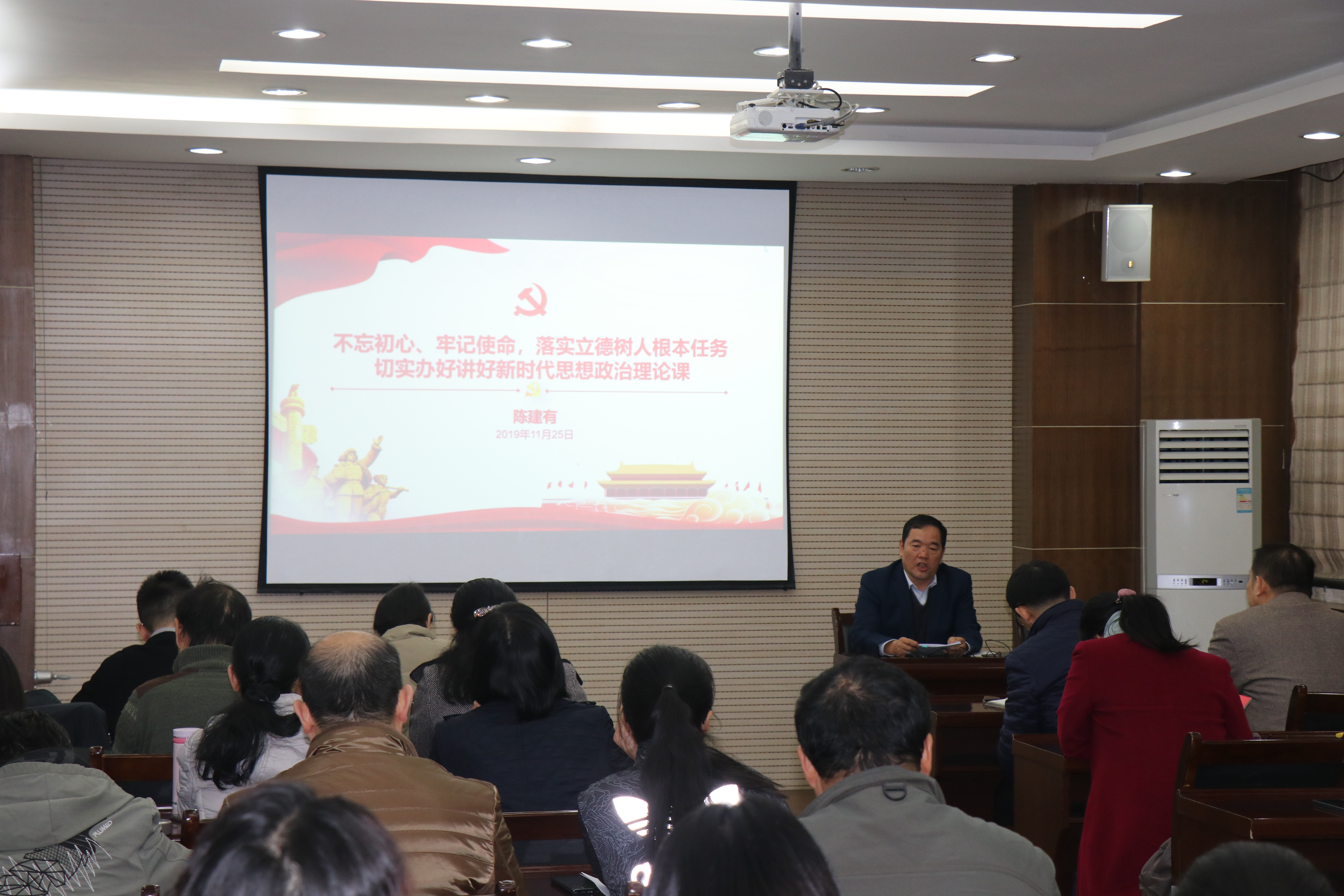 按照学校“不忘初心、牢记使命”主题教育部署安排,11月25日下午校党委副书记陈建有在必赢bwin官方网站305报告厅围绕“不忘初心、牢记使命,落实立德树人根本任务切实办好讲好新时代思想政治理论课”主题,面向必赢bwin官方网站全体教师作形势教育报告、讲授专题党课。