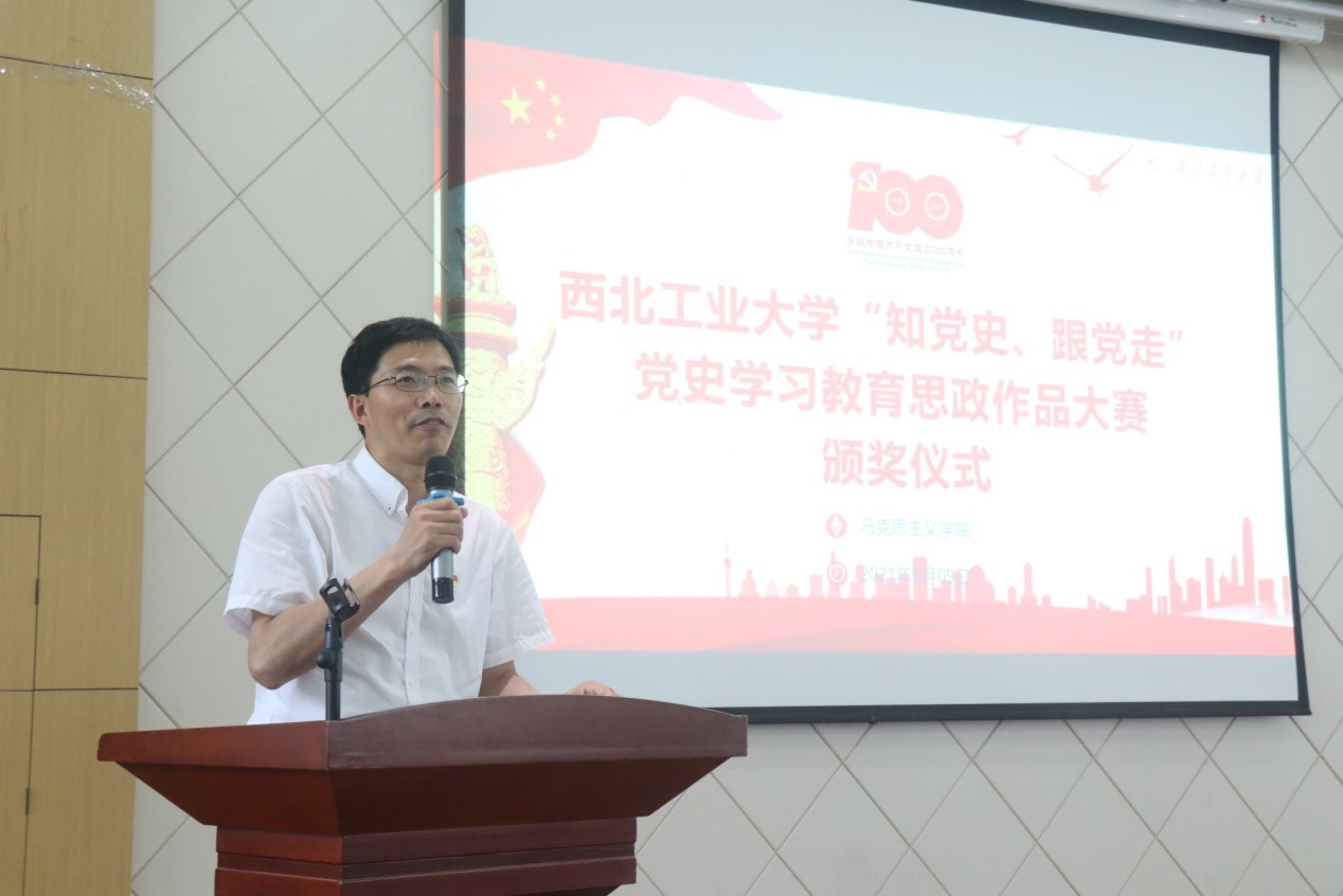 最后,代富平代表主办方党委学生工作部和必赢bwin官方网站上台发言并总结此次大赛。他鼓励同学们将个人梦想融入时代洪流,在激情奋斗中绽放青春光芒、健康成长进步,做“愿意去、留得住、干得好”的西工大人,秉承“公诚勇毅”校训,弘扬“三实一新”校风,续写新时代的“西工大现象”。通过此次大赛,充分结合思政课堂和第二课堂,深入开展党史、新中国史、改革开放史、社会主义发展史学习教育,让同学们结合党史故事、校园文化、学院特色、校友榜样等内容制作视频,提交思政作品,深化党史学习教育,让红色基因、革命薪火代代传承。