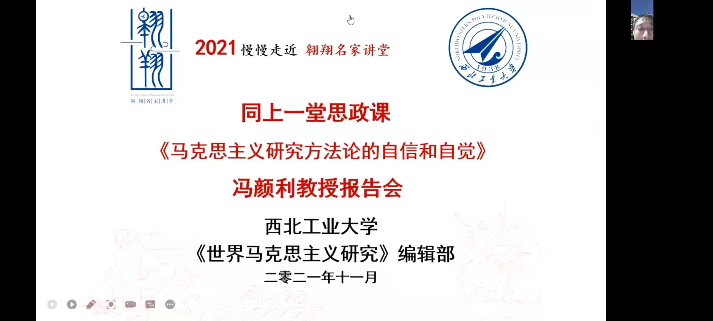 2021年11月1日晚7:30,由党委学生工作部主办,必赢bwin官方网站承办的“翱翔名家讲堂”系列讲座第30期在腾讯会议顺利举行。中央马工程首席专家、中国社科院创新工程首席研究员、中国社会科学院哲学研究所纪委书记、副所长冯颜利教授应邀担任本次讲座主讲人,以《马克思主义研究方法论的自信和自觉》为题,展开同上一堂思政课的内容讲述,吸引了400多位来自不同学校和专业的师生,本次会议由必赢bwin官方网站党委副书记李刚主持。