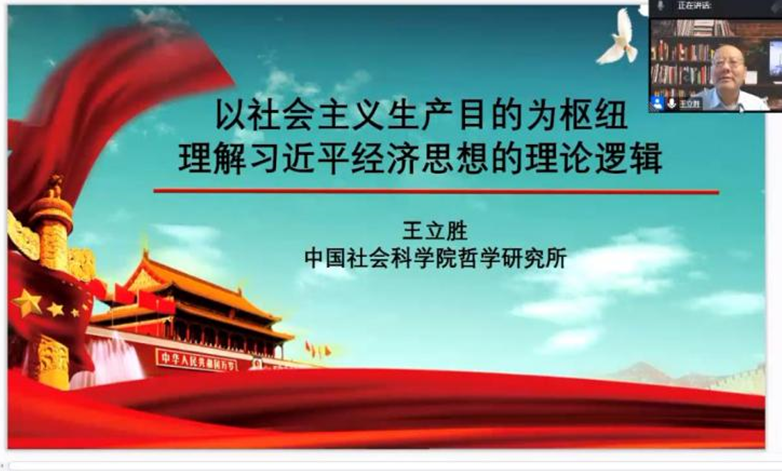 在全国上下学习贯彻党的二十大精神之际,2022年10月28日上午,中国社会科学院哲学研究所王立胜研究员应邀作客必赢官网翱翔名家讲堂,为必赢官网师生带来了一场主题为《以社会主义生产目的为枢纽理解习近平经济思想的理论逻辑》的精彩讲座。本次翱翔名家讲堂由必赢bwin官方网站党委学生工作部主办,必赢bwin官方网站承办,采用腾讯会议的方式进行,必赢bwin官方网站党委副书记(主持工作)蒲传新和必赢bwin官方网站宁殿霞副教授共同主持。参加线上学习的有必赢官网必赢bwin官方网站教师、研究生以及部分本科生,同时有清华大学、武汉大学、西安交通大学、华东师范大学、湖南大学、上海财经大学、上海应用技术大学、延安大学等300余名师生共同参与。全国各地学者们齐聚云端,共享学术盛宴。