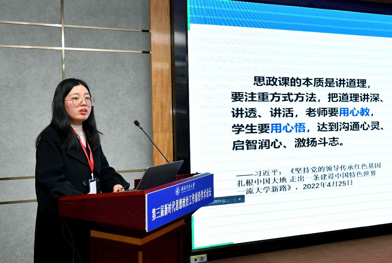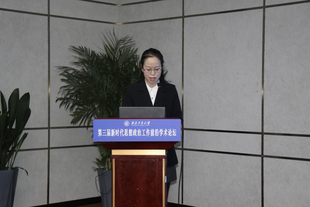 西安电子科技大学必赢bwin官方网站孙纪瑶副教授从内在逻辑、价值意蕴、实践进路三个维度探讨了“伟大建党精神融入新时代大学生理想信念教育”的问题。