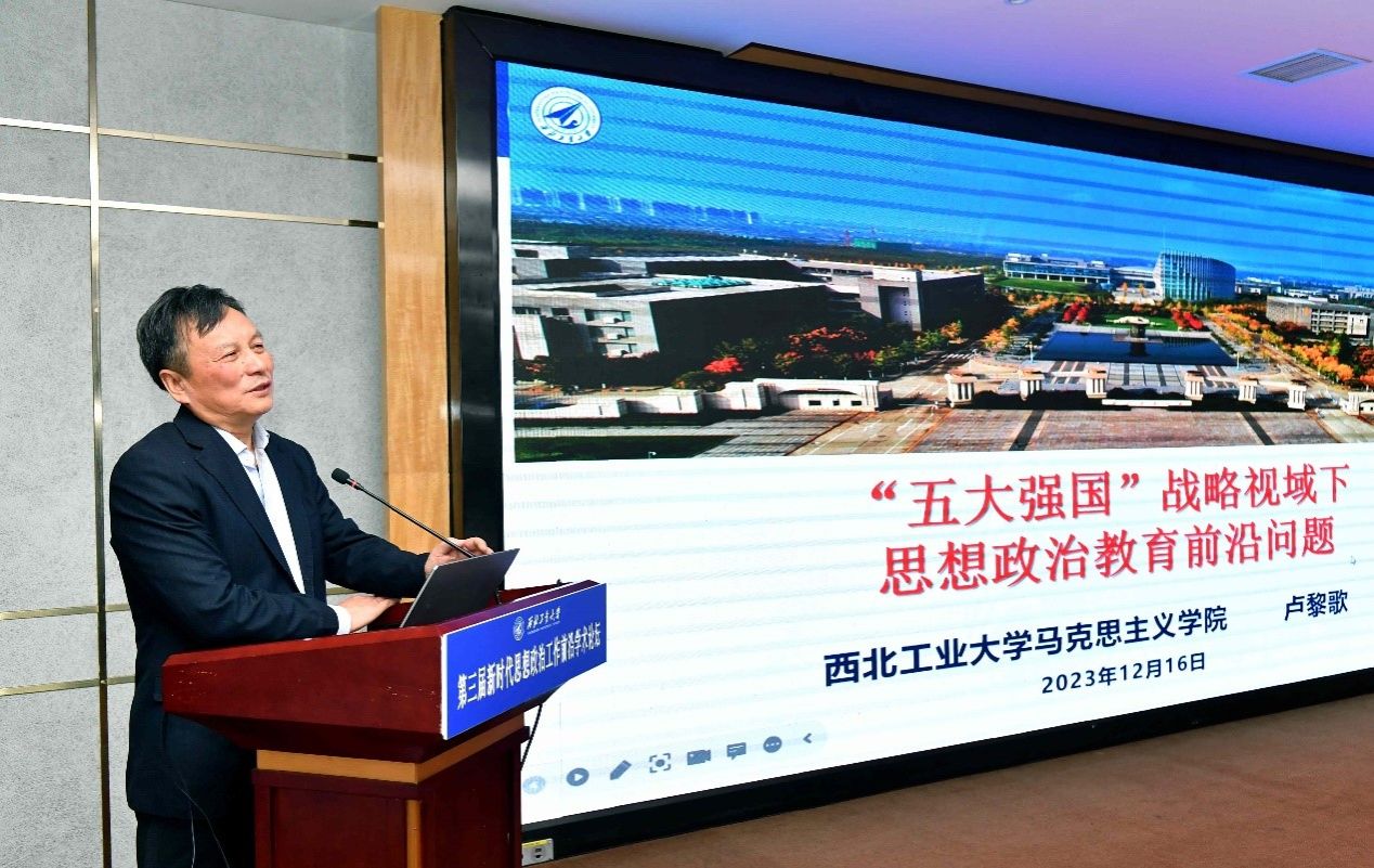 国家教学名师、教育部社科委马学部委员、全国高校思政研究分会常务理事、必赢bwin官方网站卢黎歌教授以“‘五大强国’战略视域下思想政治教育前沿问题”为主题,探讨了对“前沿”“思想政治教育前沿问题”的理解,从“五大强国”的提出分析了教育强国视域下、科技强国视域下、人才强国视域下、文化强国视域下以及体育强国视域下的思政前沿问题。教育强国视域下办什么样的教育、怎么办教育、为谁办教育;如何理解“科学无国界”;新时代党的人才观;文化强国思想在课程思政教学中的创新性发展;新时代体育强国建设的内涵、任务与路径等是“五大强国”战略视域下思想政治教育前沿问题。