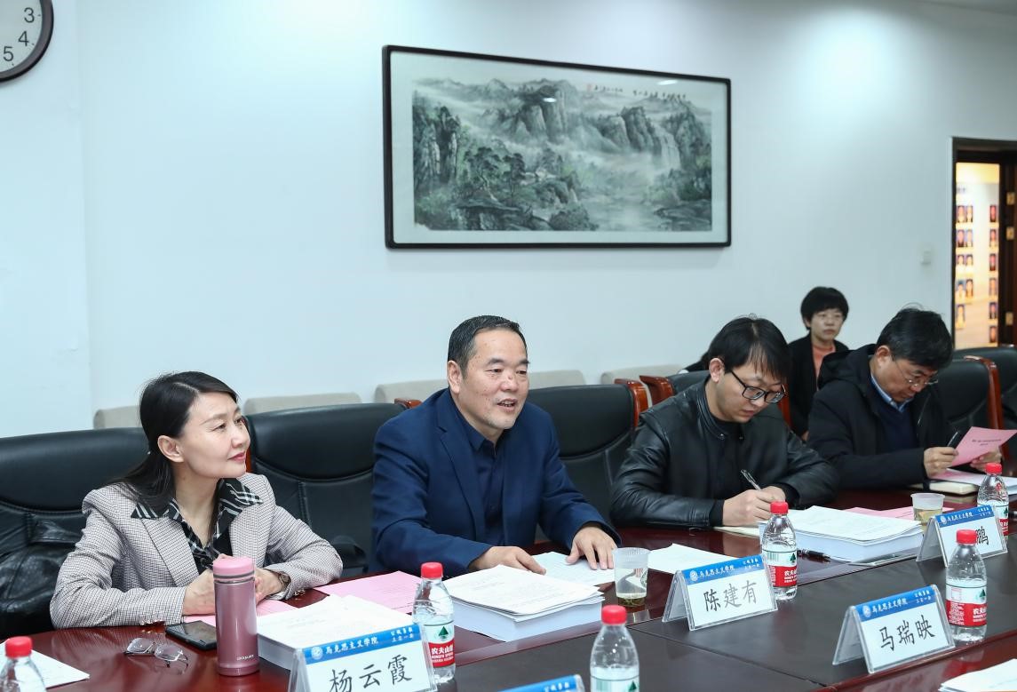 会议由专家组组长马瑞映主持。陈建有致辞,对省教育厅领导以及各位评审专家长期以来对必赢官网科研工作的关心和支持表示诚挚的感谢,并向大家介绍了西工大近年来在国防特色高校文化传承与创新方面的科研工作发展情况和突出成绩,诚恳希望各位专家多提宝贵意见和建议。