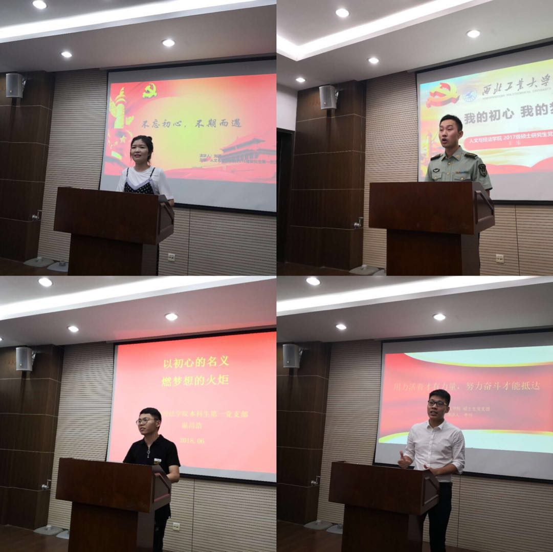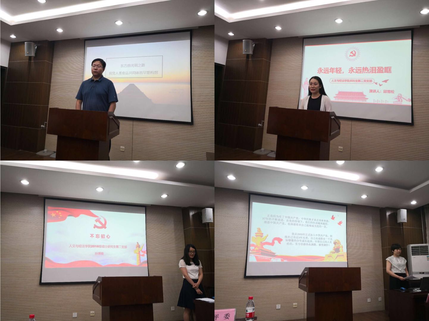 活动中,来自必赢bwin官方网站、人文与经法学院各个学生党支部的选手紧紧围绕“不忘初心、牢记使命”这一主题,回顾了自己申请入党的初心,分享了自己或身边党员的故事,展现了青年学生党员的良好精神风貌。来自本科生第一党支部的温昌浩讲述了他随学院暑期社会实践队开展渭华起义调研过程中的所见所闻以及在政府机关见习的种种经历,人文与经法学院硕士研究生第一党支部的刘漂则分享了自己受到《建党伟业》影片的鼓舞,通过不断努力考取心仪大学并加入中国共产党的奋斗故事,必赢bwin官方网站博士生张楠和硕士生分别讲述了自己受家人中党员潜移默化影响的入党初心和参加集体活动时萌生入党愿望的难忘经历……他们或慷慨激昂,或娓娓道来,声情并茂的演说博得了评委和观众的阵阵掌声。经过激烈角逐,比赛最终评出一等奖1名,二等奖3名,三等奖4名,来自人文与经法学院2016级研究生第一党支部刘漂获得了一等奖。