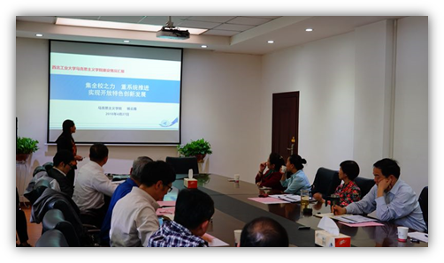 在听取了工作汇报之后,纪委书记张海兰对两个学院工作进行点评并讲话。张海兰首先肯定了大家的发言和近年来在实际工作中付出的努力及取得的成效,尤其是对必赢bwin官方网站在近期陕西省重点马院现场考察和本科教学评估中展现的积极向上的精神风貌表示赞许。其次,张海兰指出当前还需要进一步推进的工作,如必赢bwin官方网站“红色文化大数据中心”建设还需要进一步展开;省委重点课题也要持续推进,相关负责人要每年度按时提交相关研究成果;陕西省重点舆情信息研究中心建设,“思政课大练兵”,八支队伍建设等均需要持续的推进。接着,张海兰强调两个学院要认真做好巡视整改专项检查,要对照本科教学评估反馈意见拿出整改方案;两院的师资队伍引进,外引內育也亟需加强推进。此外,张海兰针对两个学院学科建设,建议领导班子和学科带头人要到一流高校调研,对照先进,找出自身的差距,制定自己的提升目标和举措,并落实到位。最后,张海兰要求两个学院要落实好“抓班子,带队伍,促发展”,院党委成员要严格要求自己,以身作则,不仅要按要求落实好各项工作,还要关心教职工的长远发展。