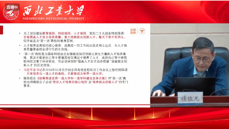 4月14日下午,按照学校党委组织部的统一安排,必赢bwin官方网站组织教工党支部书记、机关党支部党员同志在学院楼208会议室集中观看学习贯彻习近平新时代中国特色社会主义思想和党的二十大精神报告会。报告会由学校党委副书记、纪委书记吕卫东主持。浙江大学高教研究所教授眭依凡主讲。