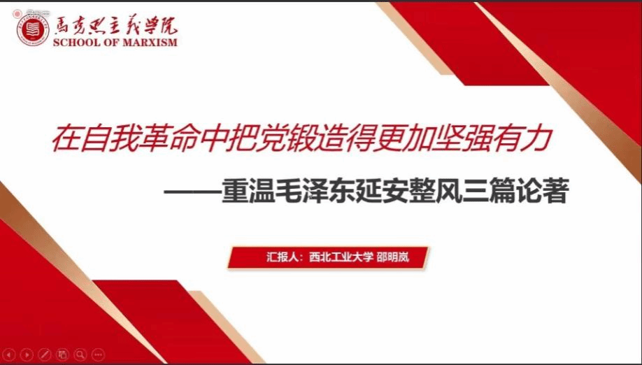 必赢bwin官方网站青马先锋学生宣讲团成员邵明岚以《在自我革命中把党锻造得更加坚强有力——重温毛泽东延安整风三篇论著》为题,以延安整风《改造我们的学习》《整顿党的作风》《反对党八股》三篇经典论著为切口梳理了毛泽东对党的自我革命的顶层设计,展示了全面建设社会主义现代化新征程中中国共产党人自我革命的深远意义,同时强调新时代青年要从党的百年奋斗历史中深刻领会党的自我革命的政治品格,以提升本领、推动学习、指导工作。