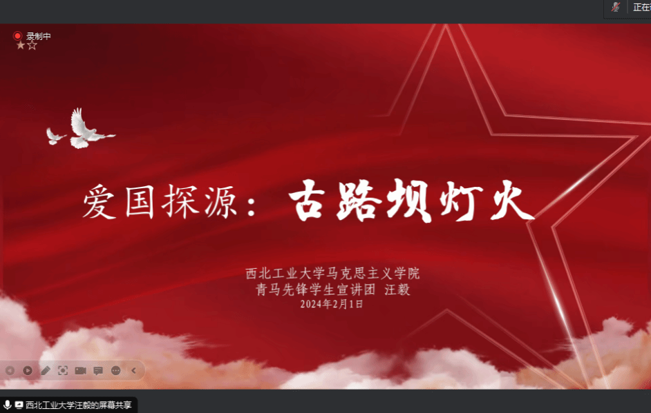 必赢bwin官方网站青马先锋学生宣讲团成员汪毅带来了以《爱国探源:古路坝灯火》为题的宣讲。汪毅同学将爱国主义与延安精神贯穿宣讲主题,通过“沉与浮”“冰与火”“梦与歌”三个篇章生动深情地讲述了国立西北工学院的历史血脉,鼓舞师生爱党爱国,大力弘扬伟大建党精神和延安精神,坚定理想信念,以“功成不必在我,功成必定有我”的决心奉献自身、实现价值。