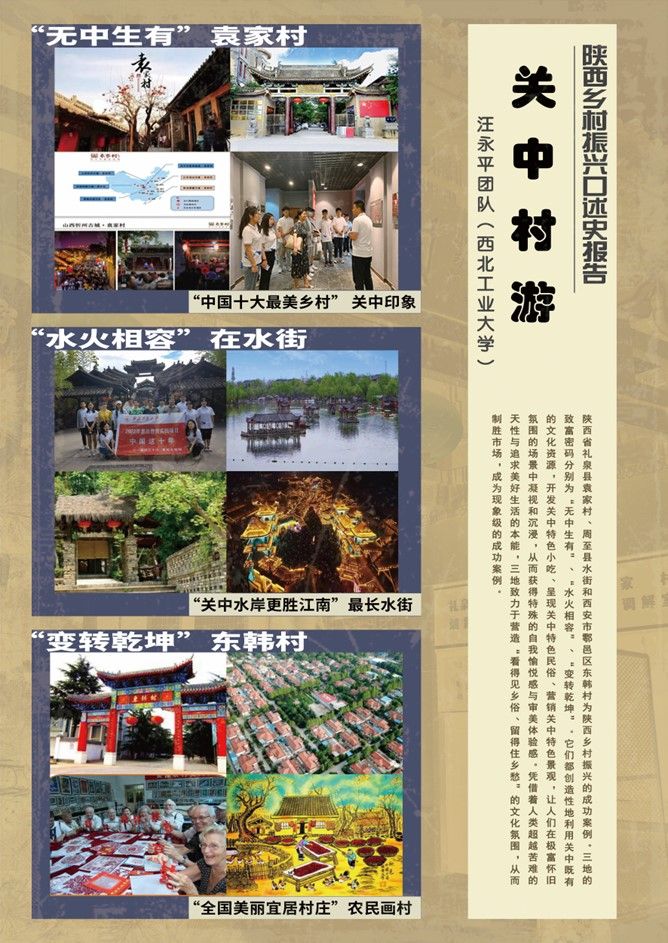 2022年暑假,必赢bwin官方网站汪永平教授带领学生社会实践团队以“陕西乡村振兴口述史”为主题,深入考察了陕西乡村振兴的成功案例:礼泉县袁家村、周至县水街和西安市鄠邑区的东韩村。作为必赢官网创新第二课堂思政育人模式的立项实践项目,受校党委学生工作部支持,活动取得了良好成效,既做到了大思政育人;又做到了宣传乡镇政府、关中文化和西工大形象的作用。该项目可以称得上是立体化、生动化和艺术化的思想政治教育实践课。其表现是: