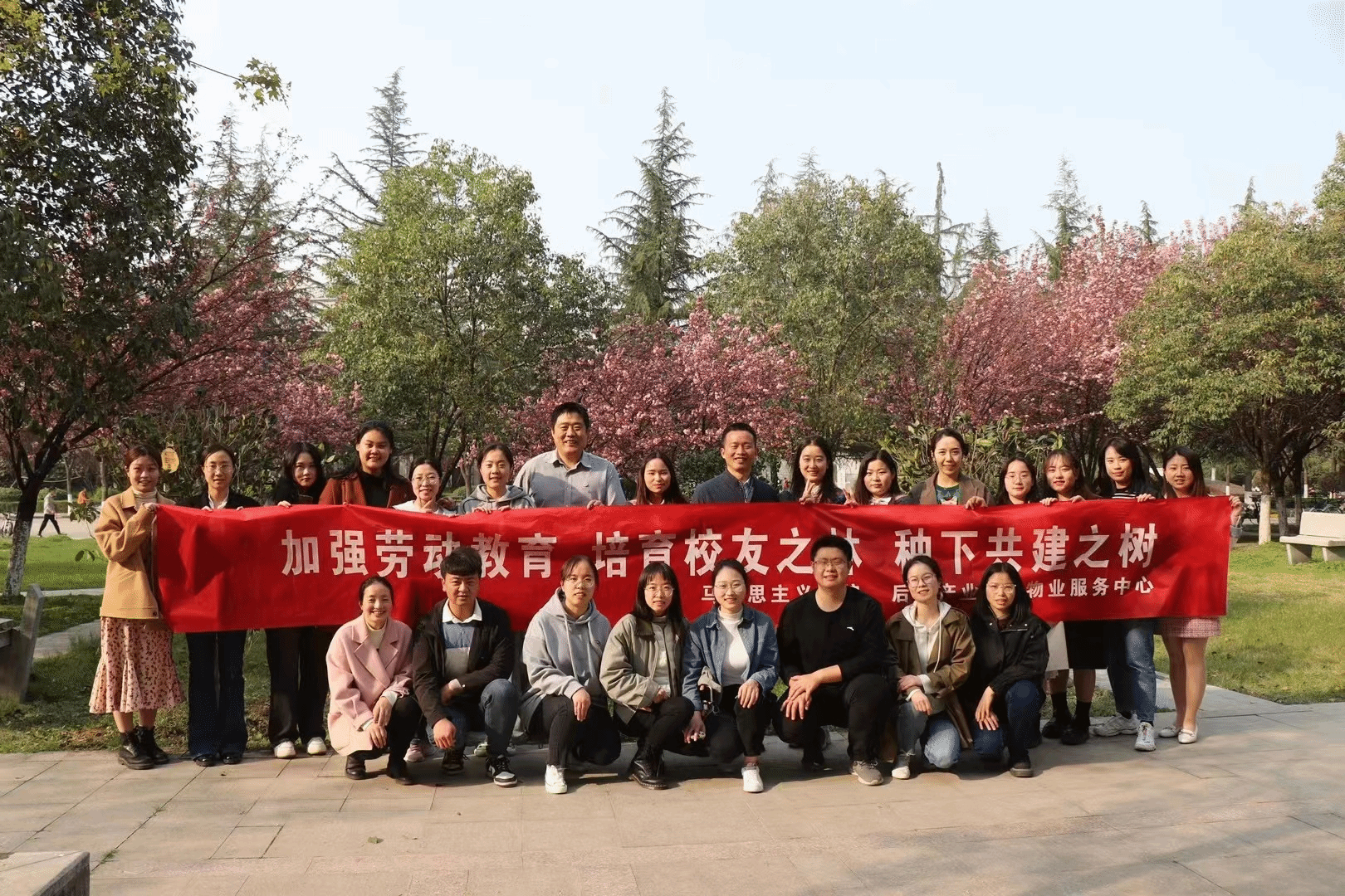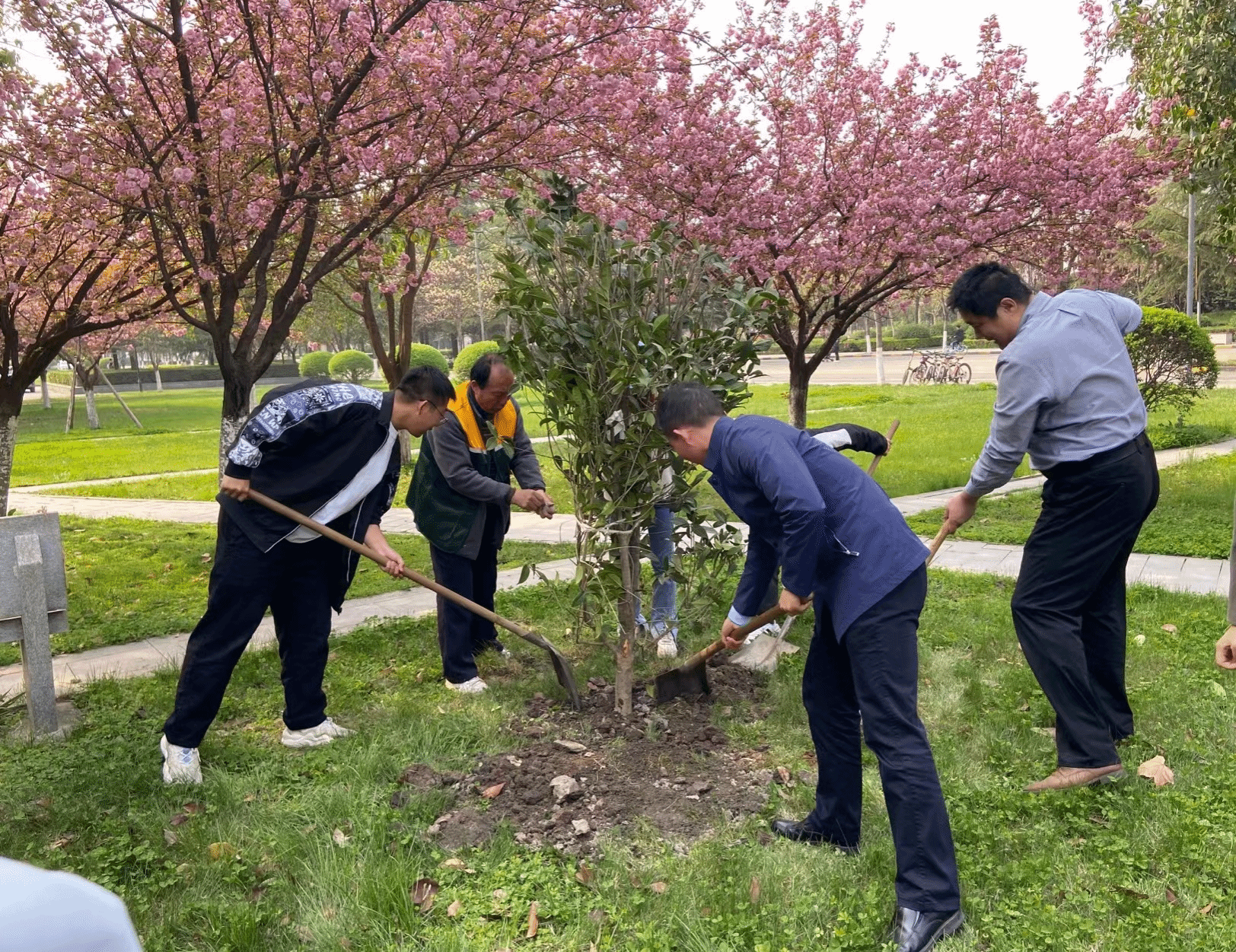 春风朝夕起,吹绿日日深。3月31日下午,在毕业到来之际,必赢bwin官方网站和后勤产业集团物业服务中心共同开展“加强劳动教育 培育校友之林 种下共建之树”主题教育活动。在学院党委副书记(主持工作)蒲传新、后勤产业集团周伟老师的带领下,学院机关党支部、后勤产业集团物业服务中心党支部及2023届毕业生一同在长安校区必赢bwin官方网站楼北侧樱花林种下四棵金桂树和一棵樱花树,取意“劳动之树、校友之树、共建之树”。