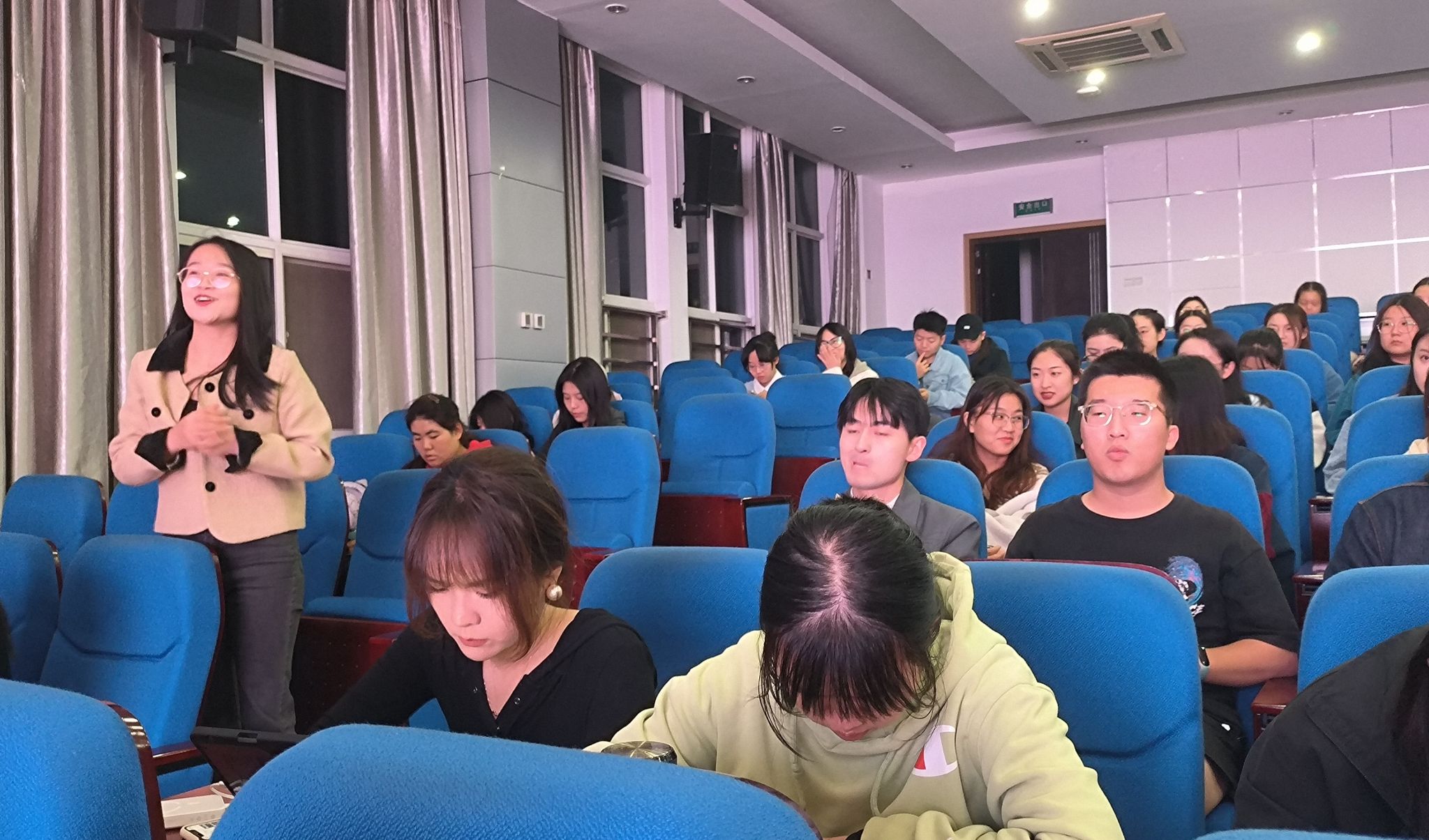 为深入开展学习贯彻习近平新时代中国特色社会主义思想主题教育相关要求,加强青年思想政治引领,进一步筑牢广大团员和青年坚定不移听党话、跟党走的信仰之基,2023年10月13日晚,必赢bwin官方网站硕士生团支部在必赢bwin官方网站207报告厅联合开展“团员和青年主题教育——思想旗帜”主题团日活动,活动由马克思主义中国化研究系团支部书记王枫主持。