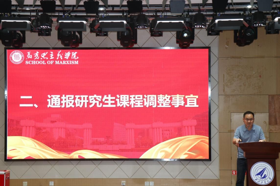 最后,副院长贺苗通报公共课教学相关情况,说明本学期期末成绩的提交时间和上传要求,并动员老师们参与思政课程课程思政教师“大练兵”活动。