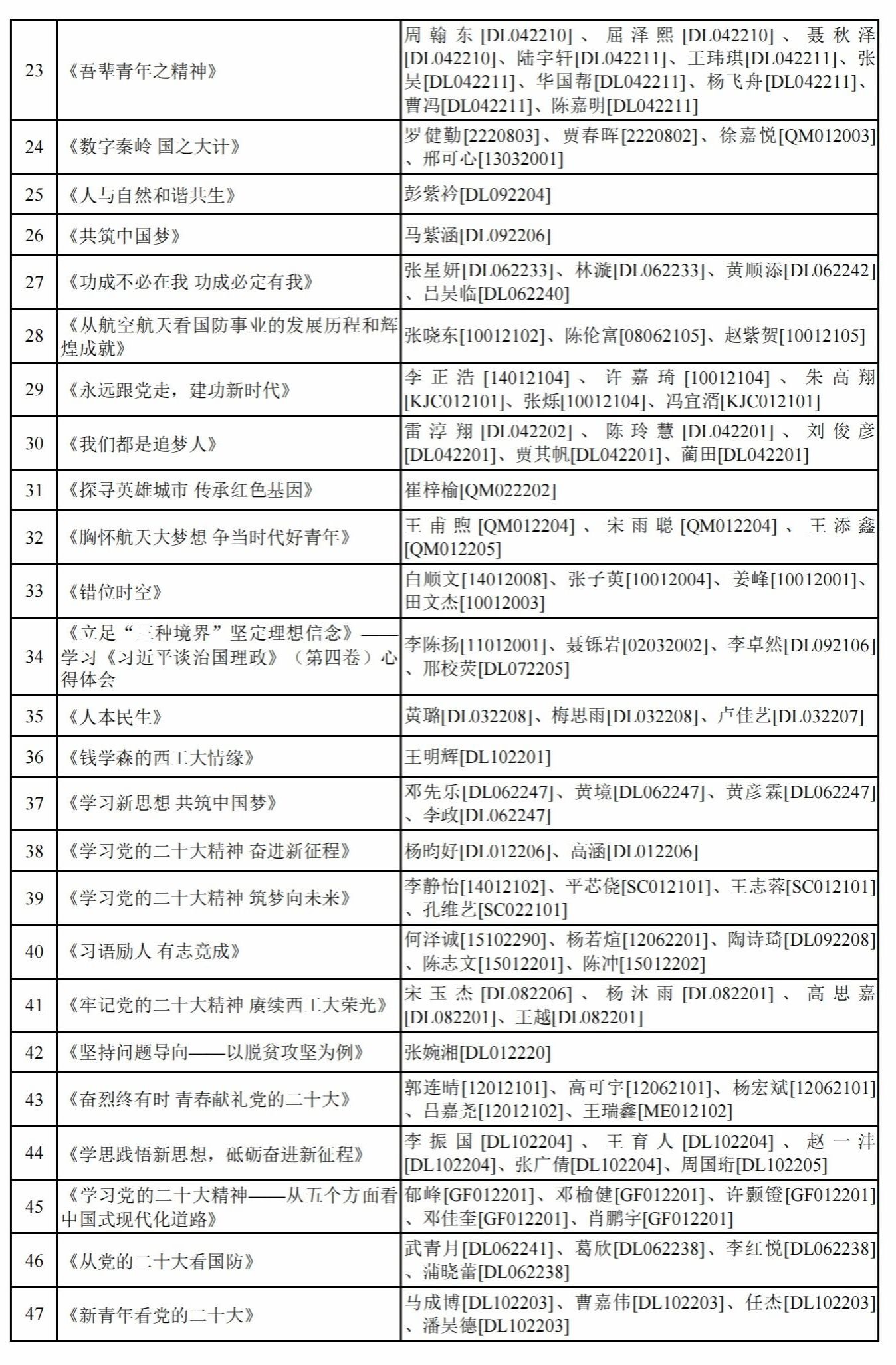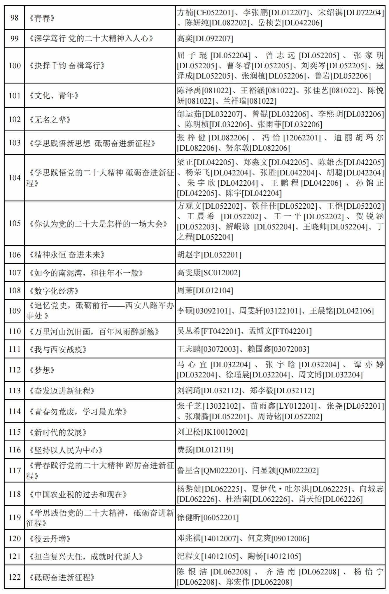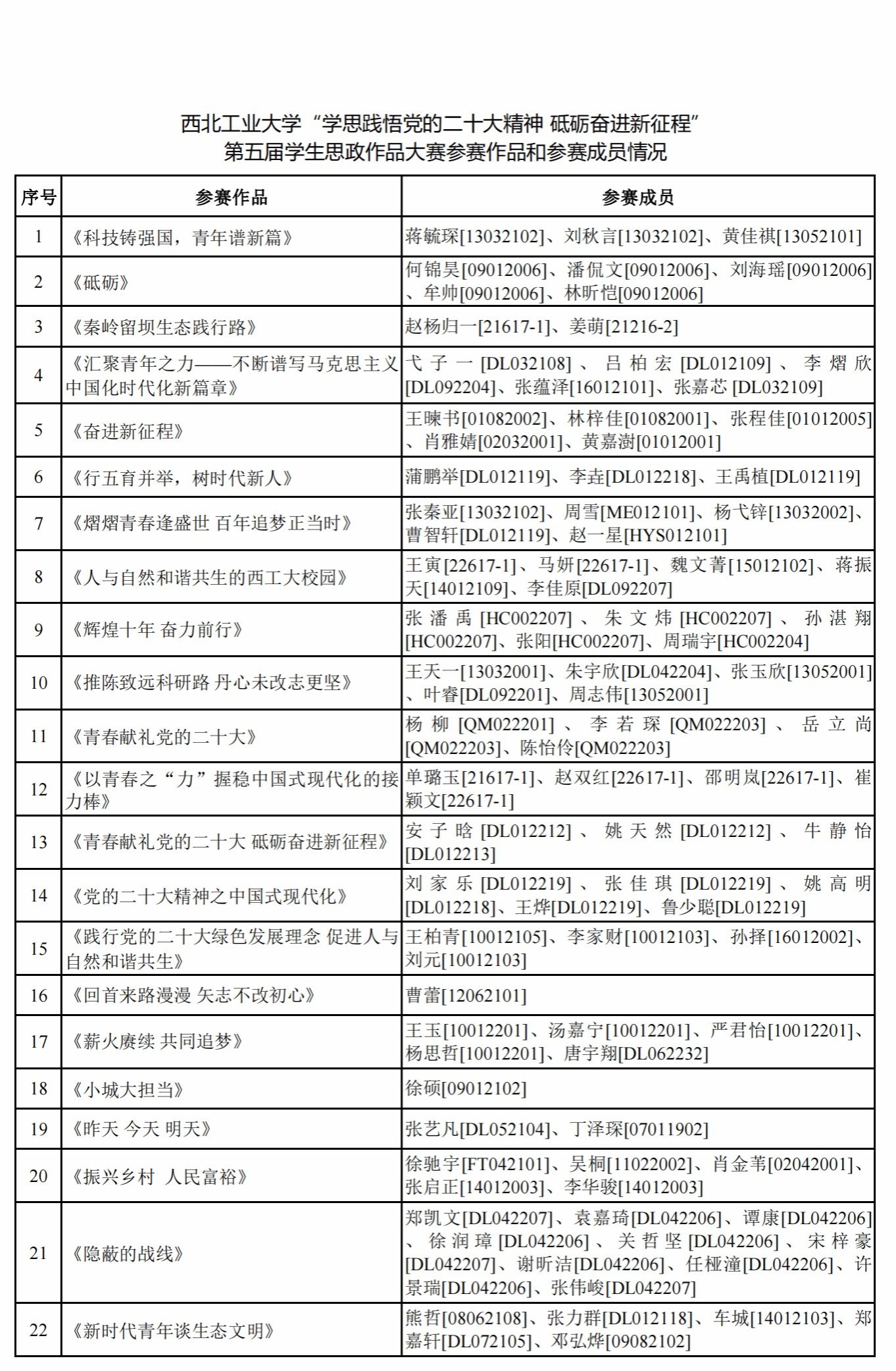 为引导全校学生充分认识党的二十大召开的重大意义,深入学习宣传贯彻党的二十大精神,深刻领会把握新时代新征程的使命任务,切实把思想和行动统一到党的二十大精神上来,把智慧和力量凝聚到实现党的二十大确定的各项任务上来,必赢bwin官方网站党委学生工作部、必赢bwin官方网站面向全校学生开展“学思践悟党的二十大精神 砥砺奋进新征程”第五届学生思政作品大赛。现将参赛作品和参赛成员予以公示。公示期间如有问题请向必赢bwin官方网站相关负责人反映。