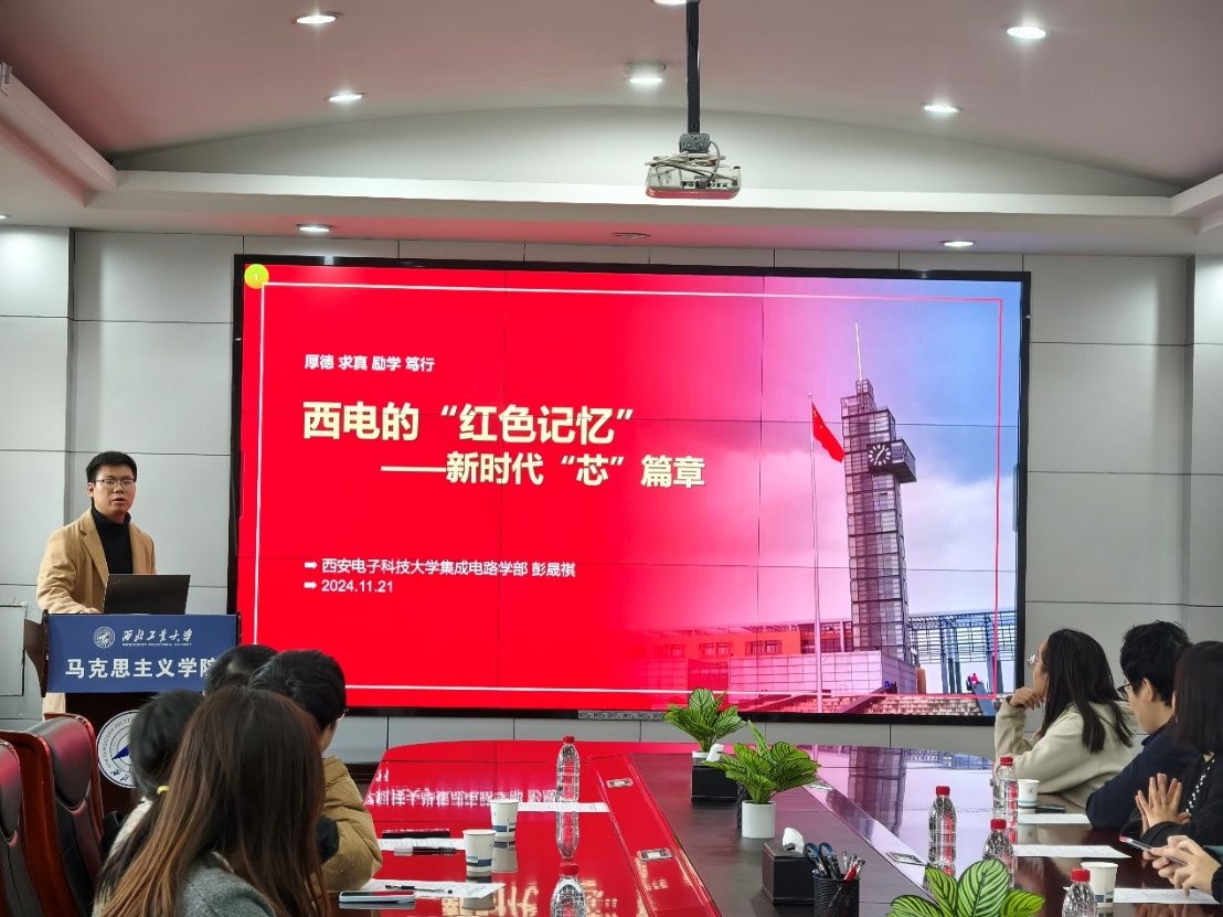 西安电子科技大学集成电路学部彭晟祺同学进行了题为《西电的“红色记忆”——新时代“芯”篇章》的思政宣讲,他从探寻西电红色基因的历史渊源、挖掘西电红色基因的核心价值和赓续西电红色基因的实践路线三个方面展开介绍,并指出西电的红色基因是一种信仰的传承,是一种精神的延续,未来将携手并肩,共同努力,为实现中华民族伟大复兴的中国梦贡献力量。