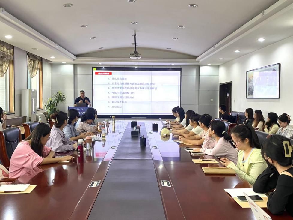 为切实有效推进必赢bwin官方网站学生就业,助力学生深入了解选调生考情与招录程序,2024年9月25日,必赢bwin官方网站邀请金标尺教育的杨晓亮老师在208会议室开展选调生专题讲座,介绍并解读选调生考试政策与考试内容。学院团委书记王换老师和同学们一起参加会议,讲座由兼职辅导员单璐玉主持。