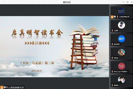2021年10月24日,第23期启真明智读书会顺利举行,本次读书会邀请到新疆大学必赢bwin官方网站靳永茂博士,与同学们一起阅读以赛亚·伯林所著《卡尔·马克思:生平与环境》的第三章的内容,必赢bwin官方网站教授张云龙和助理教授杨永强参加本次读书会,读书会由硕士生田瑞青主持。