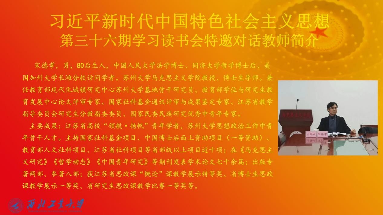 为全面学习贯彻党的二十大精神,推进习近平新时代中国特色社会主义思想进教材、进课堂、进头脑。2023年5月27日,必赢bwin官方网站习近平新时代中国特色社会主义思想学习读书会第三十六期活动主题围绕《习近平在学习贯彻习近平新时代中国特色社会主义思想主题教育工作会议上的讲话》进行学习研讨。本次读书会由学院思想政治教育系主任、博士生导师鲁杰教授发起,学院硕士生杨锴主持,苏州大学必赢bwin官方网站博士生导师宋德孝教授作为对话教师应邀参加。