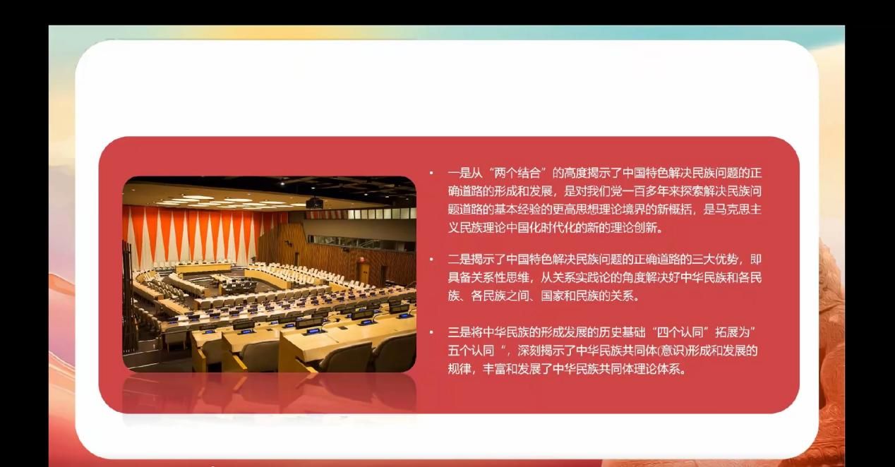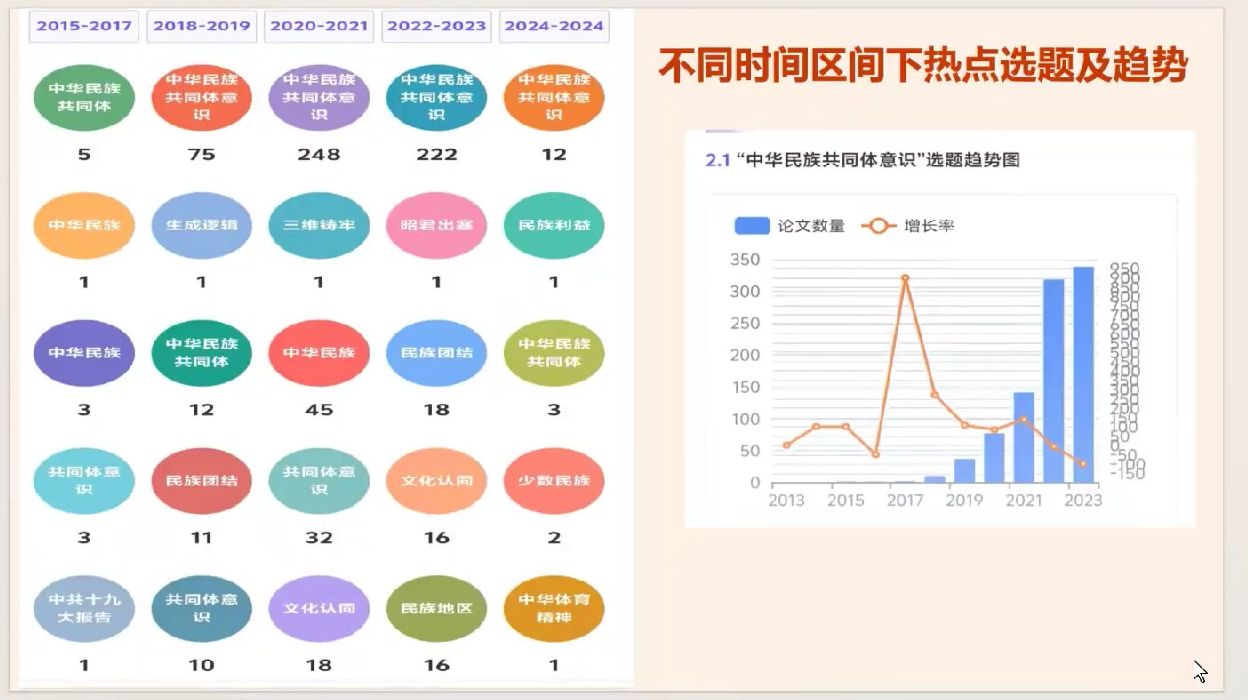 接着,必赢bwin官方网站硕士生朱静同学以中华民族共同体意识为切入点,从历史渊源与现实基础、时代意义、具体实践、路径探索与研究热点分析对讲话内容进行了深入浅出的解读。同时,她通过聚焦中华民族共同体意识当前的研究现状,为同学们提供了宝贵的学术视角。