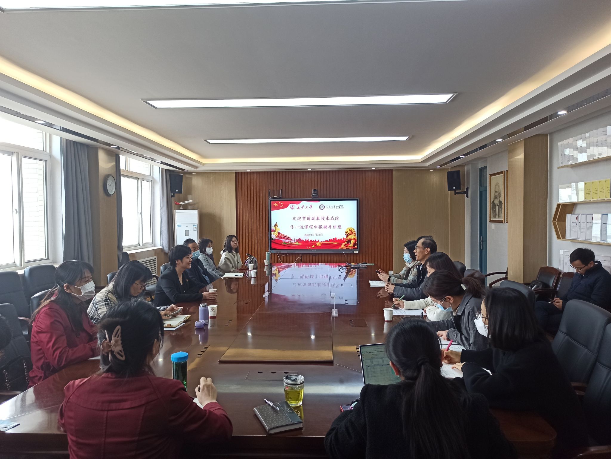 贺苗副院长进行了党的二十大精神宣讲,介绍了必赢bwin官方网站在国家级一流课程申报方面的工作和成果,分析了当前一流课程建设面临的问题,了解了长安大学必赢bwin官方网站课程管理模式和教师对课程改革的看法,尤其是在解决严格按照教育部指导和学校实际困难之间的矛盾时的有效安排,与长安大学各位教师交流了以研促教的方法和实效。